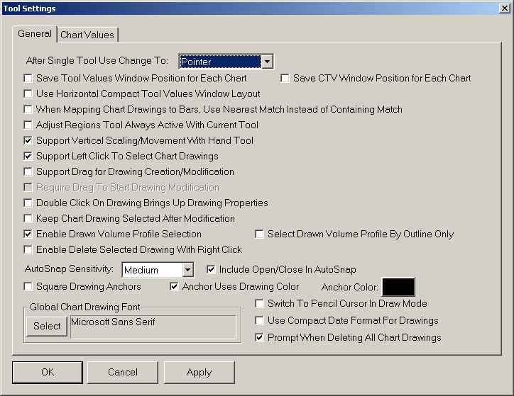OK we understand. You need to stay on the Hand tool and then you will also see the Chart Values tool at the same time. You cannot move the chart under any condition with the Chart Values tool. Sierra Chart Support - Engineering Level  Your definitive source for support. Other responses are from users. Try to keep your questions brief and to the point. Be aware of support policy: https://www.sierrachart.com/index.php?l=PostingInformation.php#GeneralInformation For the most reliable, advanced, and zero cost futures order routing, *change* to the Teton service: Sierra Chart Teton Futures Order Routing Date Time Of Last Edit: 2015-09-29 18:04:42