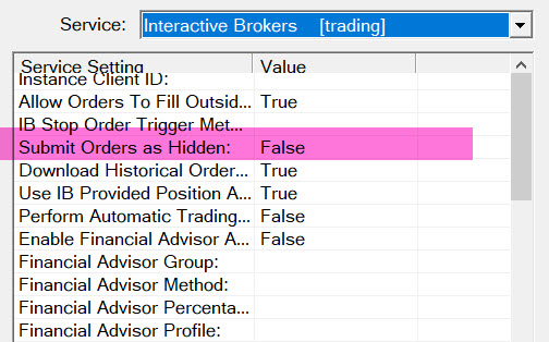 the "submit Orders as Hidden:" IB trading service option had been set to True. I did not make that change intentionally, IB was able to see that flag on the submitted order.