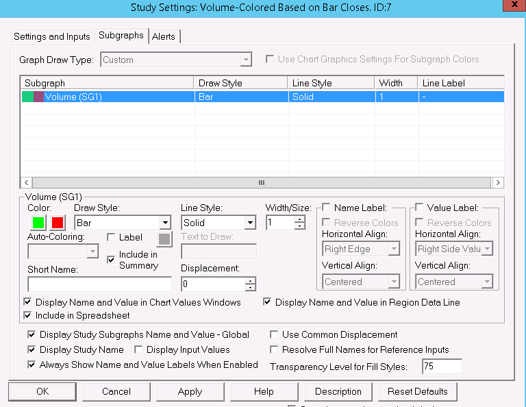 The formula I offered will only work when using Volume - Colored Based on Volume study, as you put in the title of this thread. Sorry, I didn't notice in the pics that you were instead using the Volume - Colored Based on Bar Closes study. I see that you are also using Renko bars. Apparently the Volume - Colored Based on Bar Closes study is not using Renko open and close values. Try this: 1. Add the Renko Visual Open/Close Values study, and hide the study. 2. Use a formula like this in O3: =IF(AF3>AE3,1,IF(AF3<AE3,-1,O4)) -where the Renko open is in AE3 and the Renko close is in AF3. Edit as needed. 3. Use these formulas in K3/M3: K3: =AND(AC3>3000000,O4=-1,O3=1) M3: =AND(AC3>3000000,O4=1,O3=-1)  |