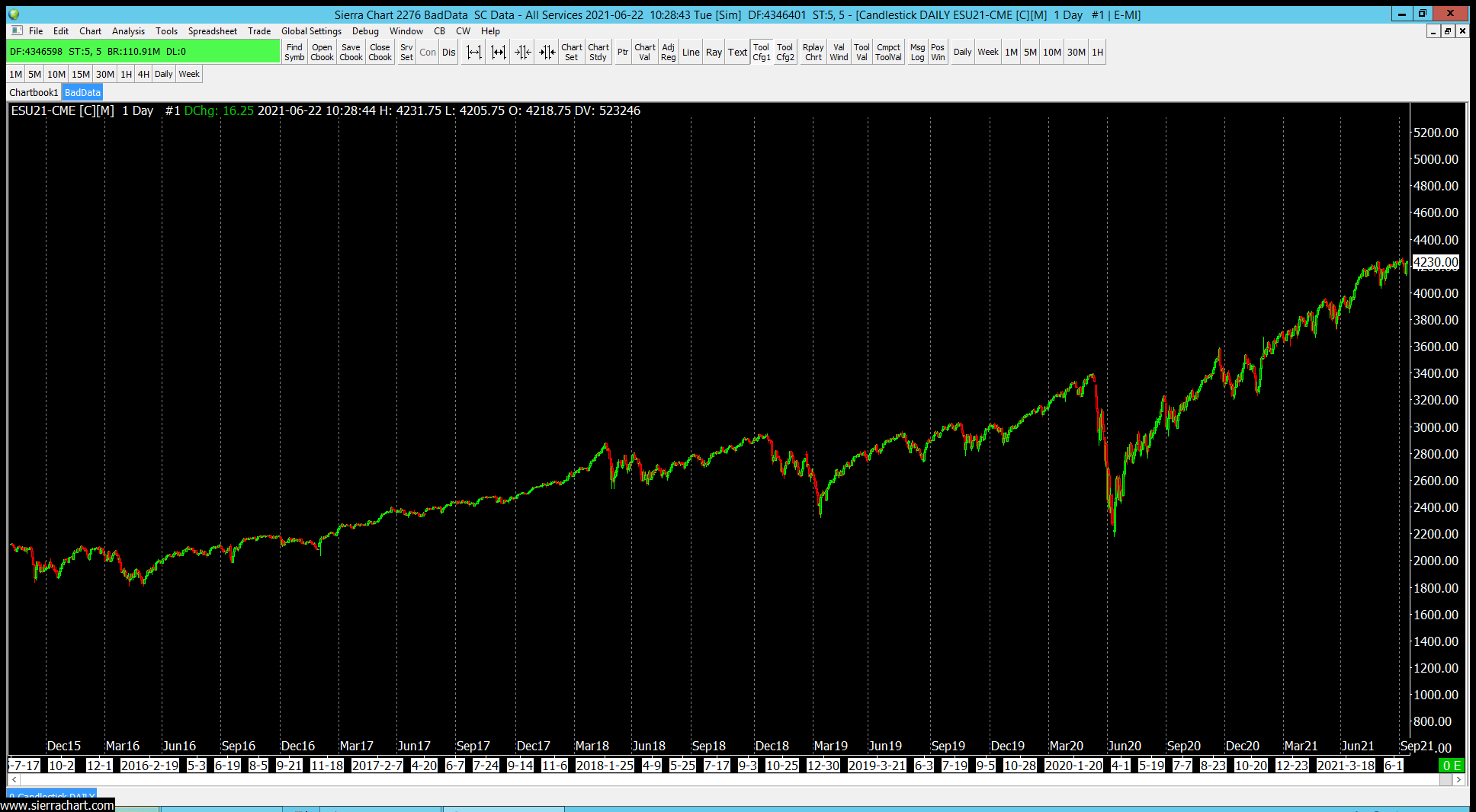 We are not having any issue with your chart as you can see in the following image: http://www.sierrachart.com/image.php?Image=1624375725254.png When you selected Edit >> Delete All Data and Download, did you select just the missing contracts, or did you select all of them? For the most reliable, advanced, and zero cost futures order routing, use the Teton service:  Sierra Chart Teton Futures Order Routing  |