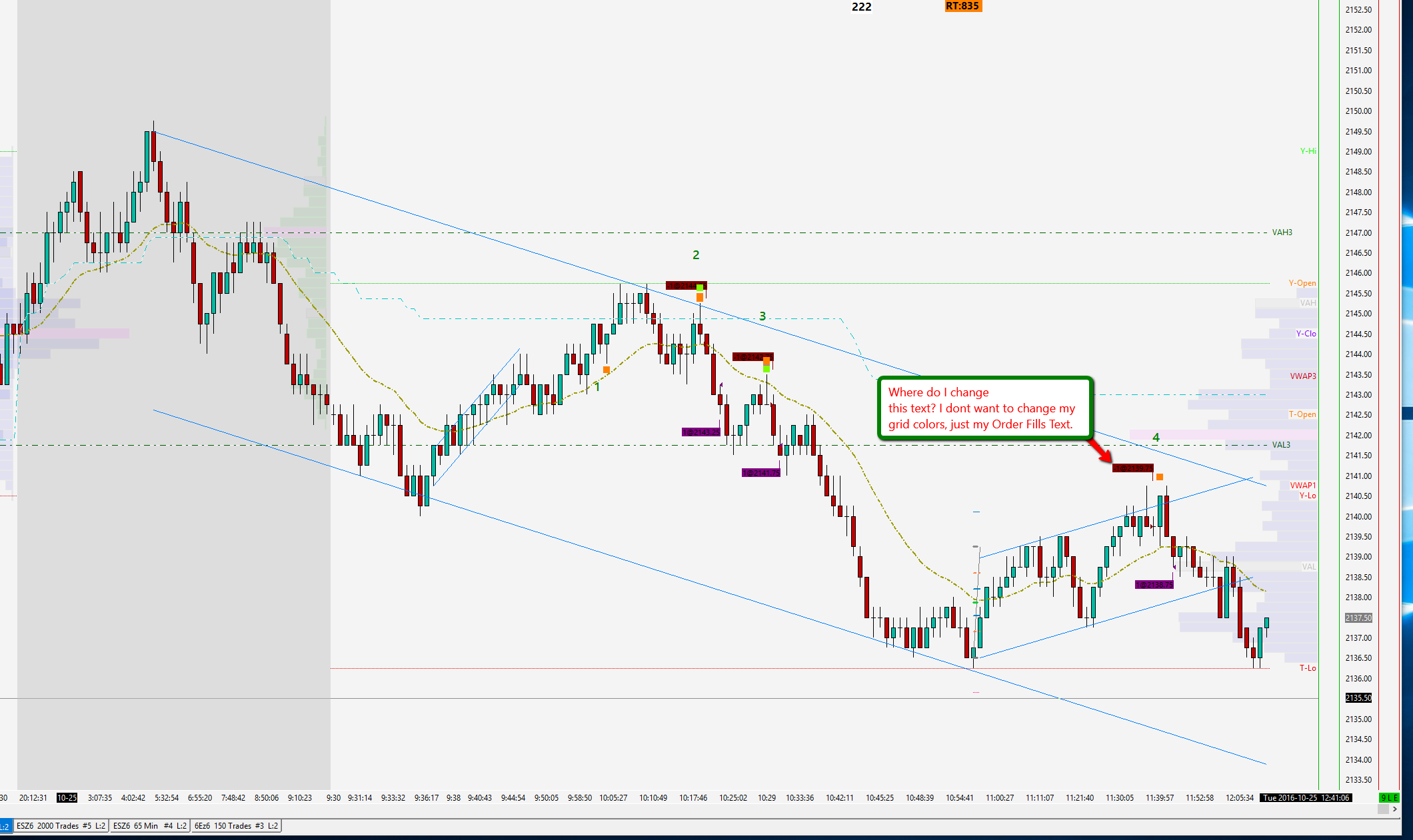 Hello,  I cannot find where to change the Order Exit and Entry Text color. I can find the background color, but I cannot find where to change the black to white in order fills on the chart as pictured. thank you  |