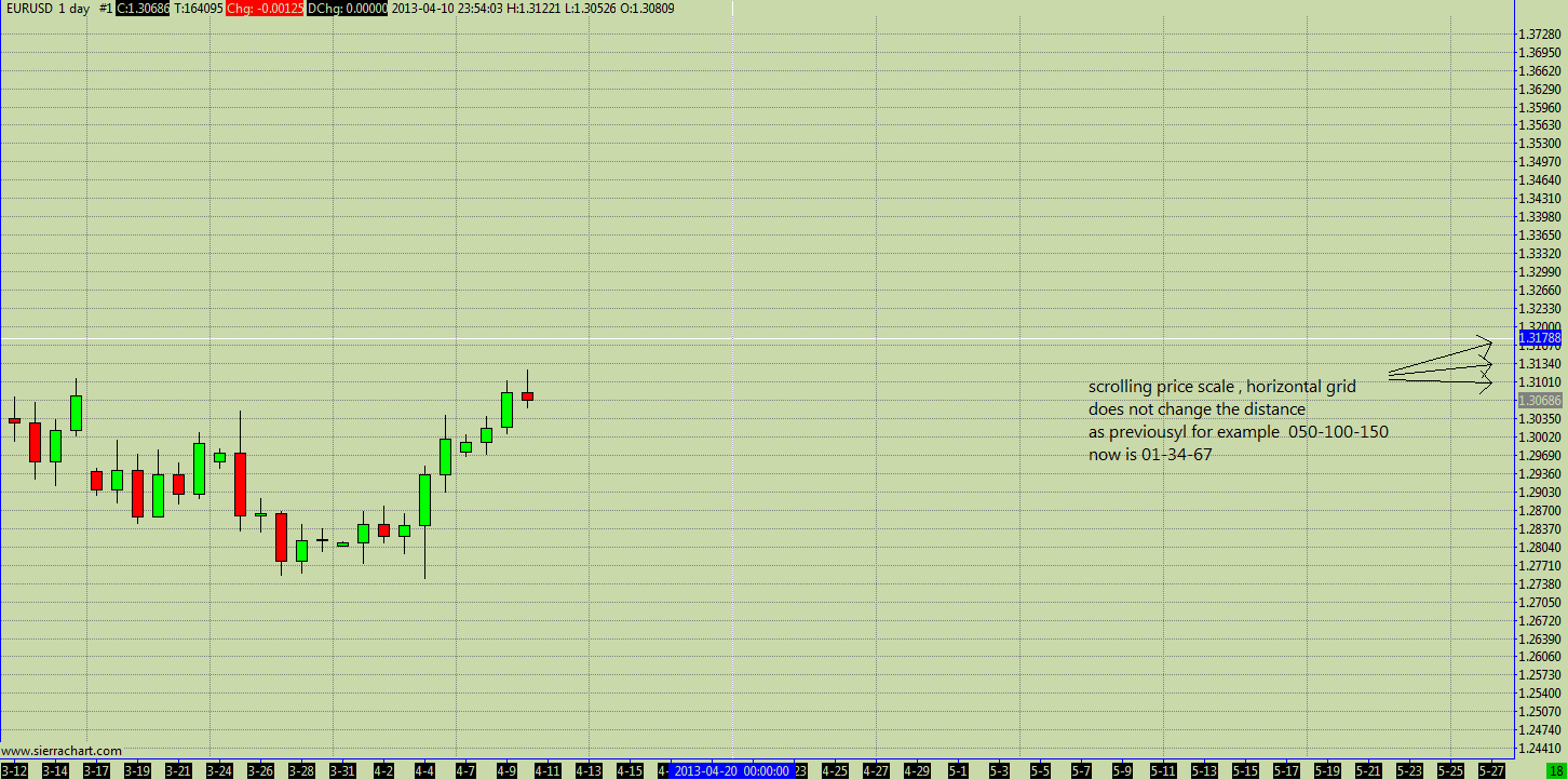 the text in the two upload charts means that, when i`m scrolling in the price scale range, horizontal grid changing evenly for example from 5-10-15-20 when scrolling in for bigger picture , then was ist for example 50-100-150 steps on horizontal grid now its hard to see the distance from grid to grid  |
