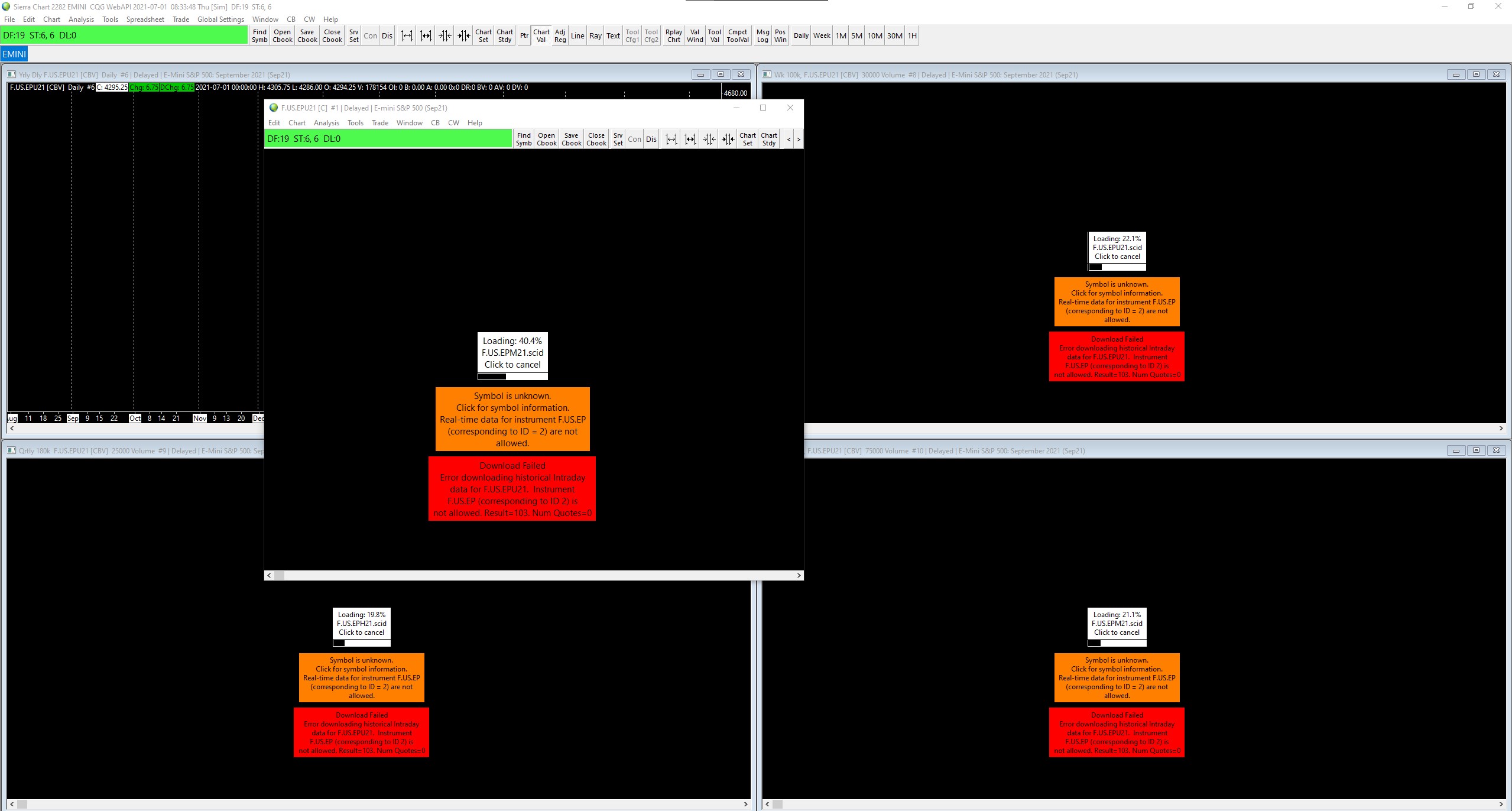 i opened my sierra chart this morning to see the following change in my sierra account. the chart says the data is delayed and gives me the following message. i have attached the picture, please help me solve this.