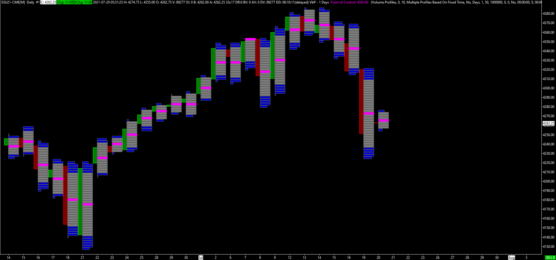 Brand new to Sierra Chart (just started my trial) and attempting to create a simple volume by price profile/per day for ESU21.  I'm also looking to highlight POC and value area and would like to display a separate profile for the evening session.  The primary issue I'm encountering is all of the horizontal volume bars are displaying as the same length. Below is a current pic and I've attached the chartbook as well in case that's helpful. http://www.sierrachart.com/image.php?Image=1626760898815.png This is obviously a newbie issue and I'd be happy to go through all the doc in the future, just want to ensure I can get this to work before my trial expires - thx so much!  |