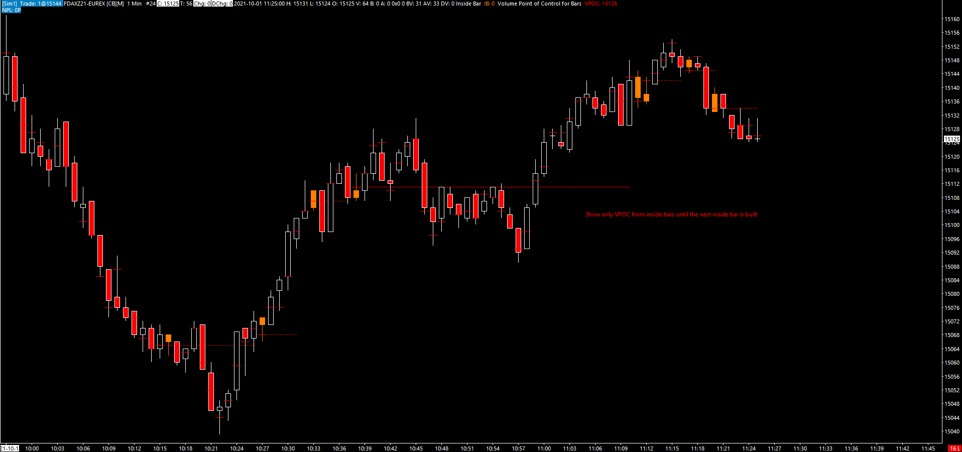 Is it possible to display the VPOC only in inside bars. For example in a 1 min candle chart. I tried the "Volume Point of Control for Bars" Study, but i can not choose a special type of bar Thanks, erwin