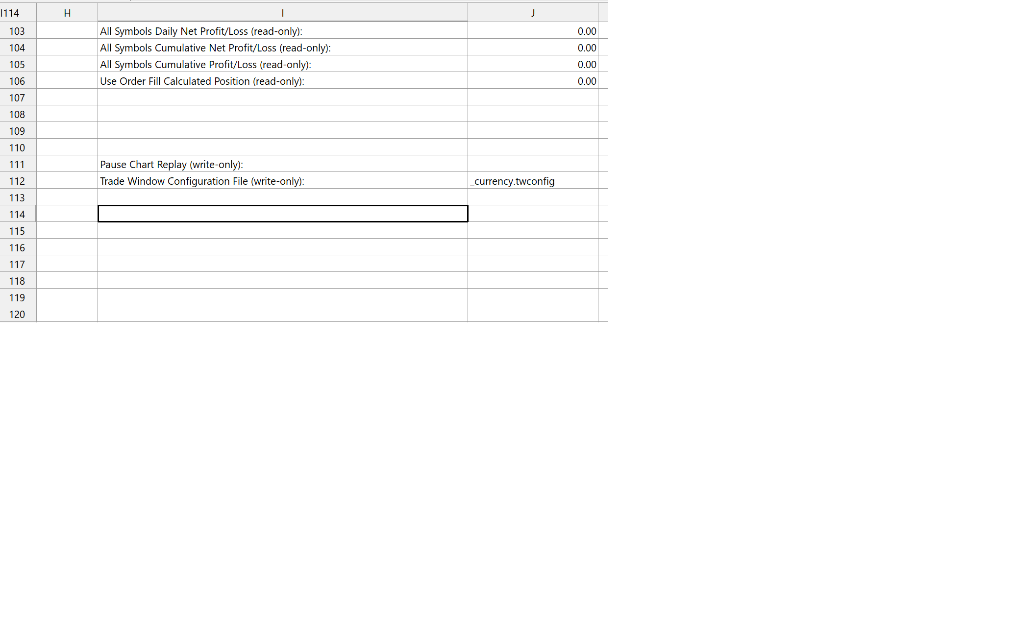 Good afternoon. I often check a certain range of values in formulas: 0.0011 < X < 0.0013. How can I define (write) constants in the Spreadsheet System for Trading table and refer to them, or create (define) a range and check its occurrences? |