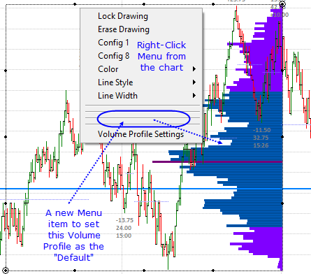 Here is a slightly different angle on Drawing Volume Profiles from the Tools menu. Say, I have 2 or three different hand drawn Volume Profiles on my chart(s), each with slightly different Input settings (Study Settings -> Settings and Inputs). Would it be possible to add an enhancement to SC so that I can basically right-click on any of the hand drawn Volume Profiles in the chart and set that as the default for all future hand drawn Volume Profiles? Please see the attachment. At the moment I can achieve this by going to the particular Volume Profile's Study Settings page and checking the "Save these settings as the default" option. I was trying to reduce the number of mouse clicks needed to draw different styles of volume profiles quickly. Thanks. Date Time Of Last Edit: 2015-01-07 04:08:20