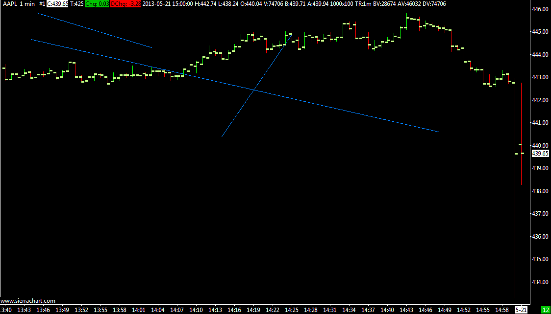 I have some issues with a AAPL chart not going past 1500 . it stopped displaying data at that time and created a large bar http://www.sierrachart.com/image.php?l=1369142145296.png Date Time Of Last Edit: 2013-05-21 13:17:39