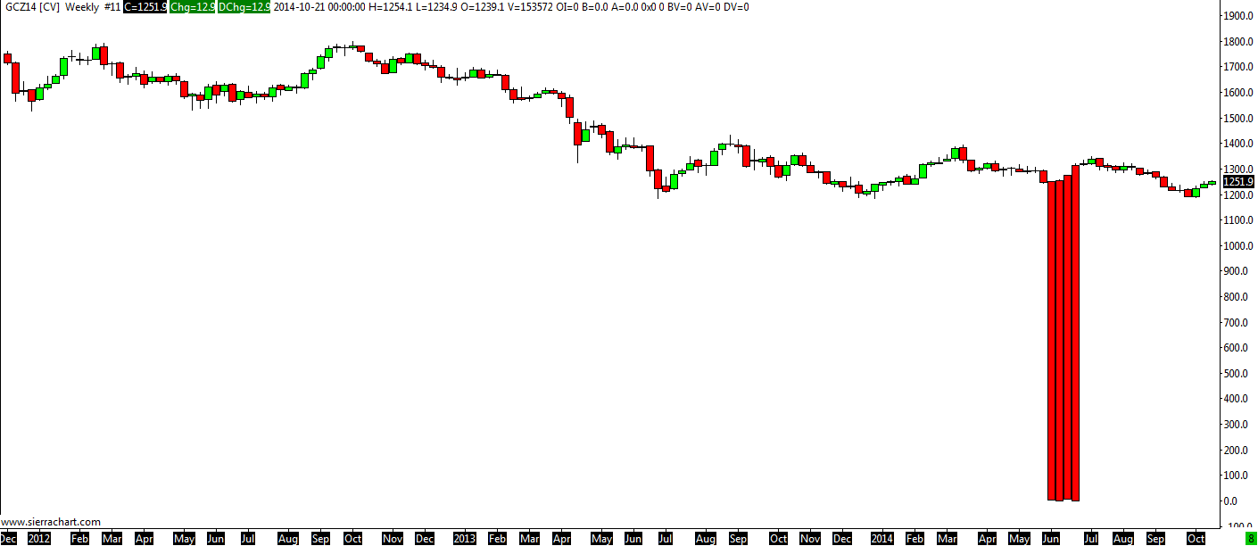 We want you to follow through the instructions here and delete all the historical Daily data files for GC: https://www.sierrachart.com/index.php?page=doc/doc_ContinuousFuturesContractCharts.html#ReDownloadingByDeletingFiles Another easy way to do this is to select File >> Open Historical Chart. Delete the GC* files And then go to the chart and select Chart >>Reload Sierra Chart Support - Engineering Level Your definitive source for support. Other responses are from users. Try to keep your questions brief and to the point. Be aware of support policy: https://www.sierrachart.com/index.php?l=PostingInformation.php#GeneralInformation For the most reliable, advanced, and zero cost futures order routing, *change* to the Teton service: Sierra Chart Teton Futures Order Routing |