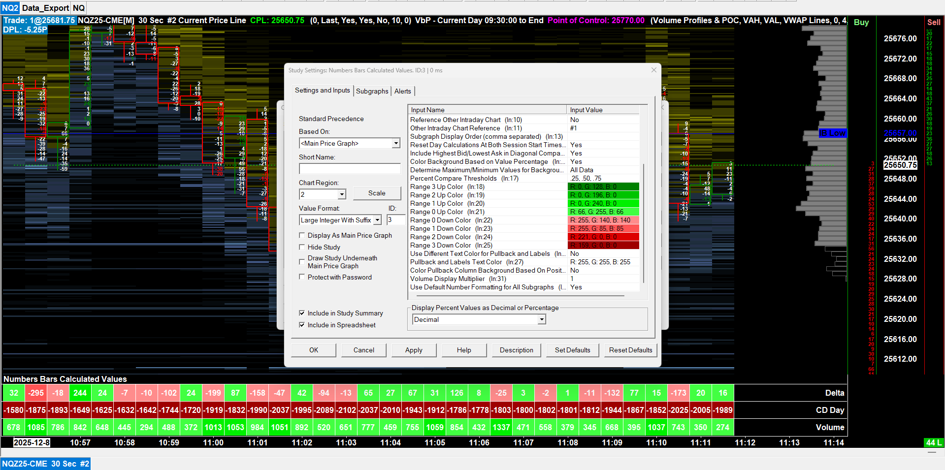 What you did is the correct option to have the Numbers Bars Calculated Values use the Large Number Formatting. But, the formatting only occurs when you have values of 10000 and greater. The image you provided shows values less than 10000 so this would not apply to those numbers. For the most reliable, advanced, and zero cost futures order routing, use the Teton service: Sierra Chart Teton Futures Order Routing |