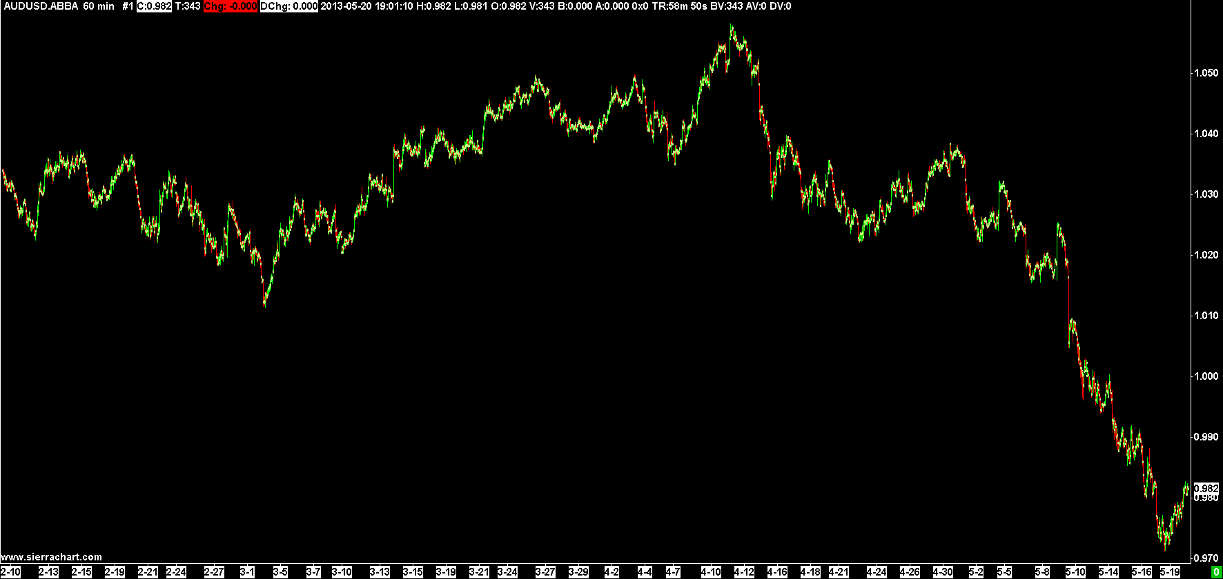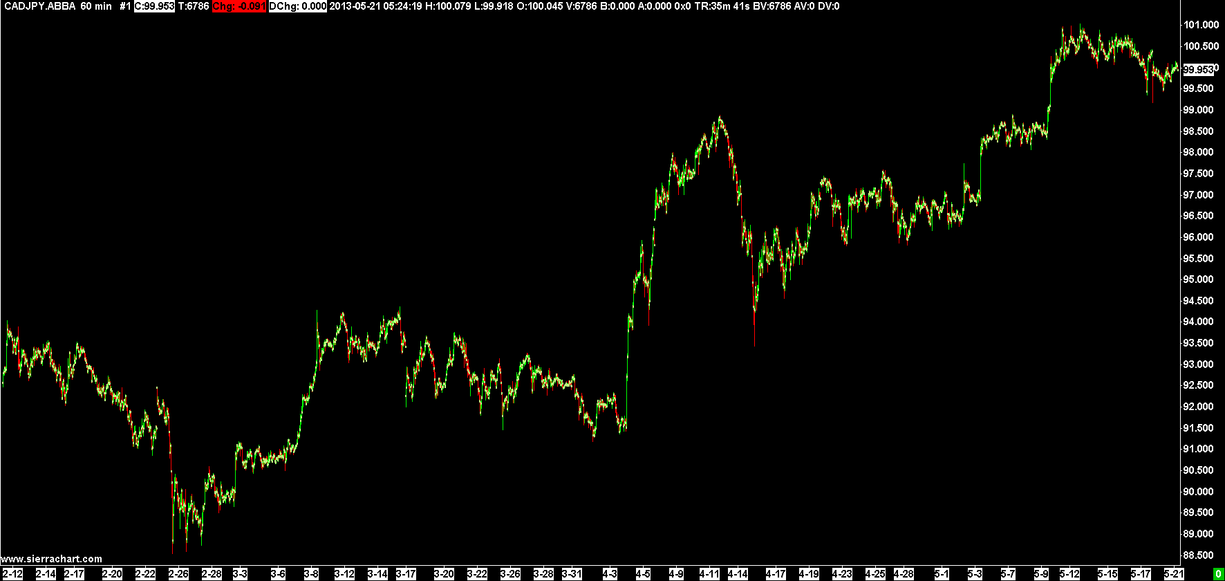 Thank you for the reply. I have downloaded G10 majors and crosses data. My first observation of the backfill is apparent missing data mostly in 2013...Almost all G10 Major pairs ran into blank screen from Jan to early May...Interestingly, this is the period where back-fill history is available for both 1 minute and tick. I wonder if there is a hidden conflict when it attempts to download both of them. I know the SC would say there is no problem. This is not a criticism but I think it is worth investigating the source code of the SC a little bit where the minutes and ticks are handled and sorted. This is an example of a cross FX image. I am in the process of checking the rest of the Major FX crosses history before I proceeding with the rest of the download. Thanks. http://www.sierrachart.com/image.php?l=1369124839765.png |