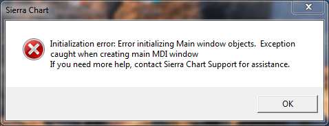 We still need to do more work to review code to see where the problem could be. It does relate to the new control bar we are developing. There have been some changes already and we would like to know if the problem is still encountered. Here is a link to the version with the new control bar: https://www.sierrachart.com/downloads/SierraChartSetupNoCLRPrereleaseTest.exe We recommend just installing this into another folder and see if you encounter the startup error. Sierra Chart Support - Engineering Level Your definitive source for support. Other responses are from users. Try to keep your questions brief and to the point. Be aware of support policy: https://www.sierrachart.com/index.php?l=PostingInformation.php#GeneralInformation For the most reliable, advanced, and zero cost futures order routing, *change* to the Teton service: Sierra Chart Teton Futures Order Routing |