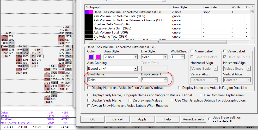 Good day support. 1. When applying filters on the chart (Figure 10, 20, 30) setting Trades (SG12) does not change the values. It is right? 2. If you want to change the sequence settings (Figure 40, 50) in the table (Delta, Trades, Total Vol :) no result. It is right? How to change the sequence (order) of the display settings? 3. When the function is implemented Background cell depending on its value? (similar to "Colored Bar Statistics" study | Post: 6191) Date Time Of Last Edit: 2016-02-10 09:36:39