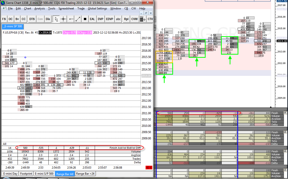 This looks very good. You can trust Sierra Chart is calculating the Finish Ask Volume Bid Volume Difference correctly. So we do not see a problem here. Here is the formula for it: https://www.sierrachart.com/index.php?page=doc/doc_NumbersBars.php#SubgraphDescriptions What we recommend doing is displaying the individual Subgraphs used in the "Finish" calculation and then you can manually calculate it to see it is correct. Sierra Chart Support - Engineering Level Your definitive source for support. Other responses are from users. Try to keep your questions brief and to the point. Be aware of support policy: https://www.sierrachart.com/index.php?l=PostingInformation.php#GeneralInformation For the most reliable, advanced, and zero cost futures order routing, *change* to the Teton service: Sierra Chart Teton Futures Order Routing |