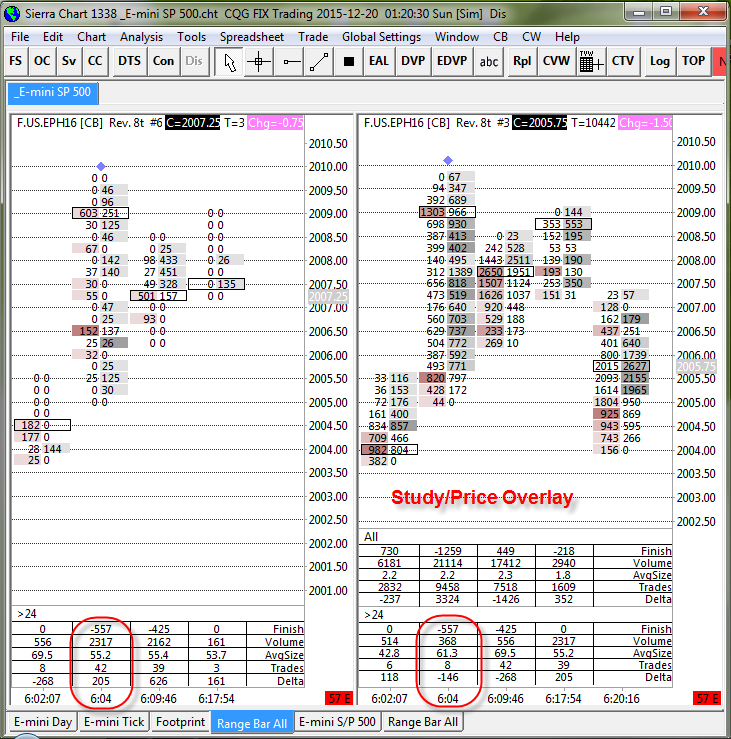 Provide us a Chartbook that contains these two charts which demonstrates this issue. So far we have not been able to duplicate this. Here are instructions: Support Board Posting Information: Attaching a File (Optional) Sierra Chart Support - Engineering Level Your definitive source for support. Other responses are from users. Try to keep your questions brief and to the point. Be aware of support policy: https://www.sierrachart.com/index.php?l=PostingInformation.php#GeneralInformation For the most reliable, advanced, and zero cost futures order routing, *change* to the Teton service: Sierra Chart Teton Futures Order Routing |