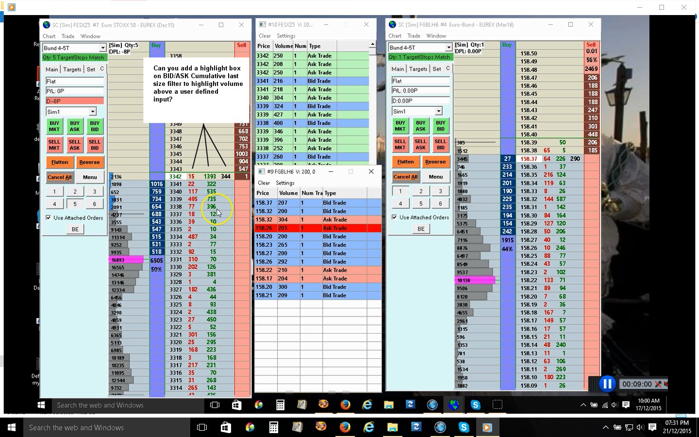 Hey S.C.E again I have a request for the DOM, as you added a highlight to the Last Traded Recent Bid Volume Background I have another request that I am willing to PAY for: Highlight Cumulative last size with first initial uptick in blue, then white there after, first initial downtick in red, then white there after. Can I stack the Cumulative last size on top of the volume at price? Please let me know as I need this for the end of the month. Thank you in advance. Sebastian |
