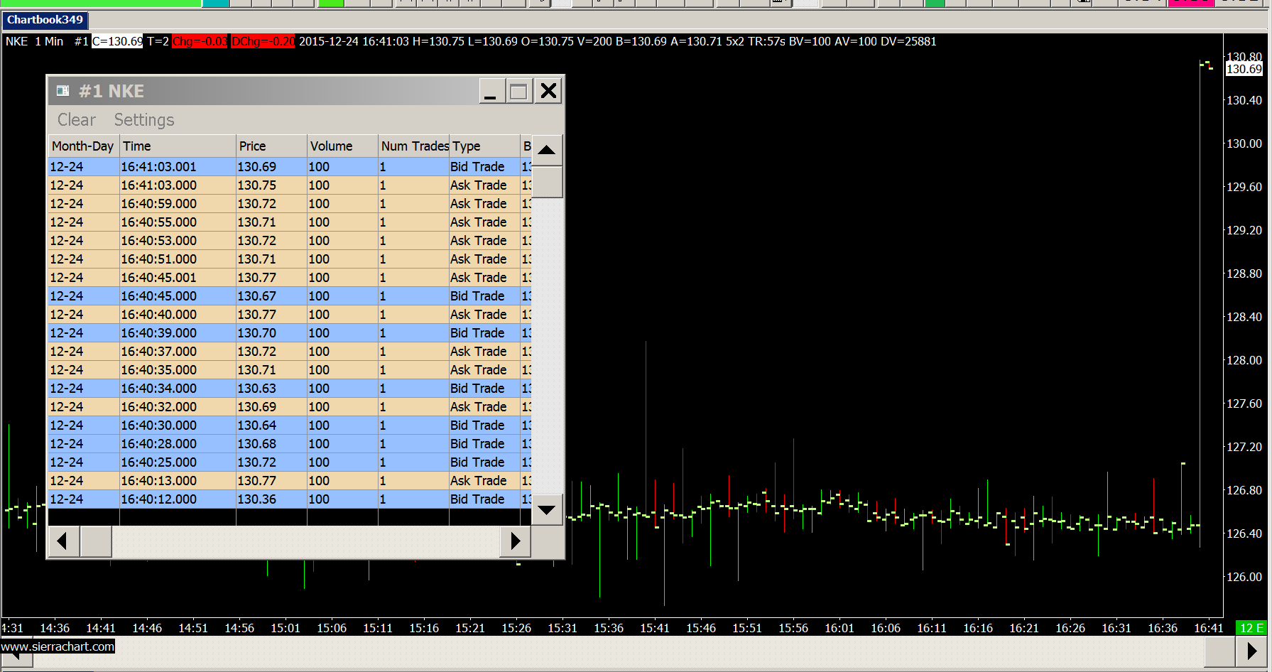 Volume still has not been corrected on IB. The time and sales windows prints a lot of less than 10-share trades and unusual shares traded which was not common in version 1297. As a result, total volume showing on the chart is lower than the actual volume. I have to refresh the chart all the time to get the correct volume on the chart. See attached time and sales window for NKE which is heavily traded today. How can I trade when I cannot rely on the chart? I don't understand why I am forced to use a version that does not print the correct data. Can't I go back to version 1297 until this problem is fixed? Date Time Of Last Edit: 2015-12-24 14:44:42