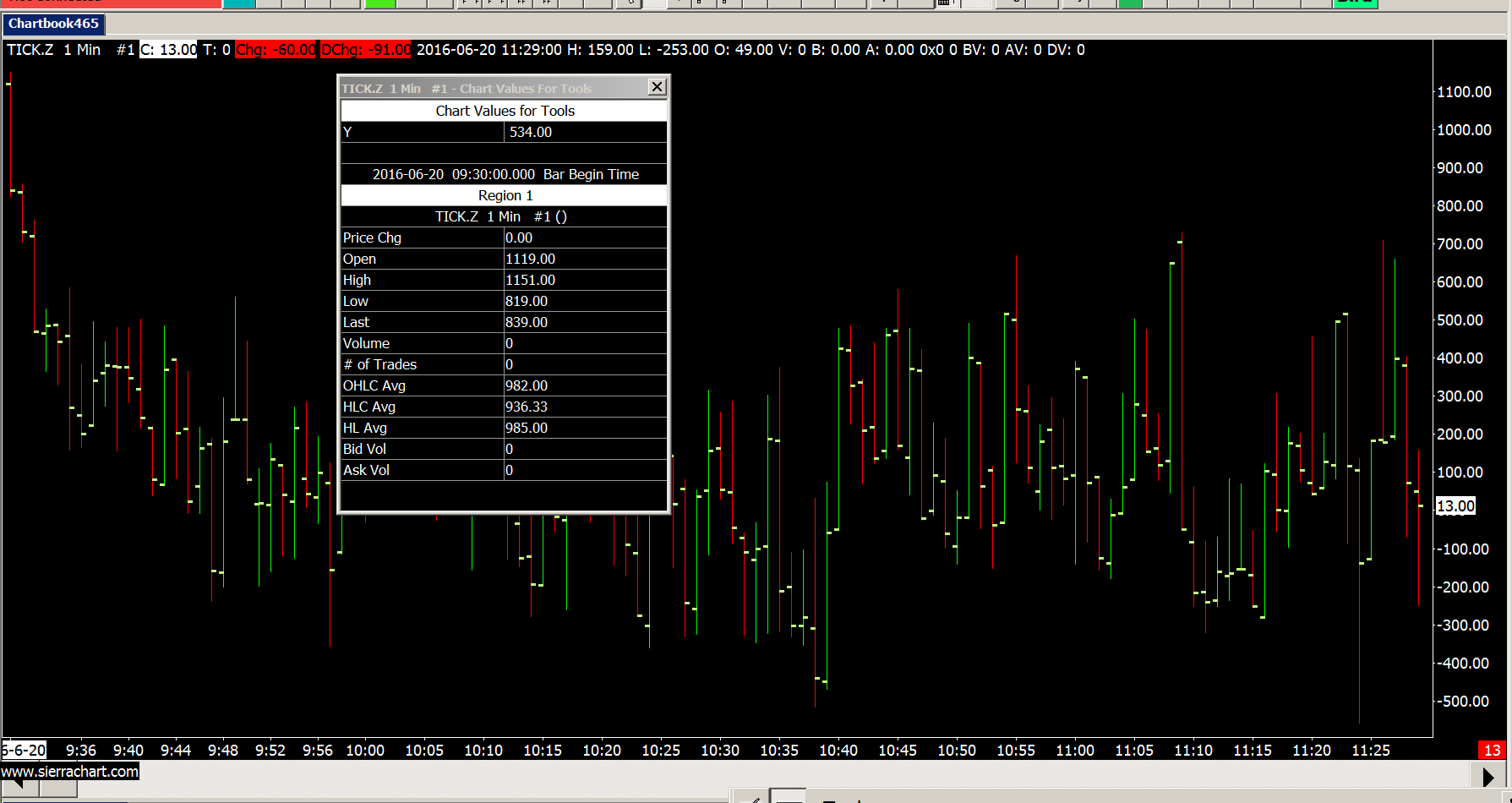 Although if these other calculations were to sample all of the trading activity at the open and then begin with the real-time updates to the TICK, that may give them the result that they have of a significantly positive value. So actually this is the real explanation for it. In this case, the others are not necessarily wrong. But effectively the Sierra Chart market statistics were doing that before when it was starting the calculation at 4 AM. Update: We did change the Sierra Chart TICK calculations to start the calculations in the premarket which starts at 4 AM, as was the case before. Sierra Chart Support - Engineering Level Your definitive source for support. Other responses are from users. Try to keep your questions brief and to the point. Be aware of support policy: https://www.sierrachart.com/index.php?l=PostingInformation.php#GeneralInformation For the most reliable, advanced, and zero cost futures order routing, *change* to the Teton service: Sierra Chart Teton Futures Order Routing Date Time Of Last Edit: 2017-01-08 19:48:23
