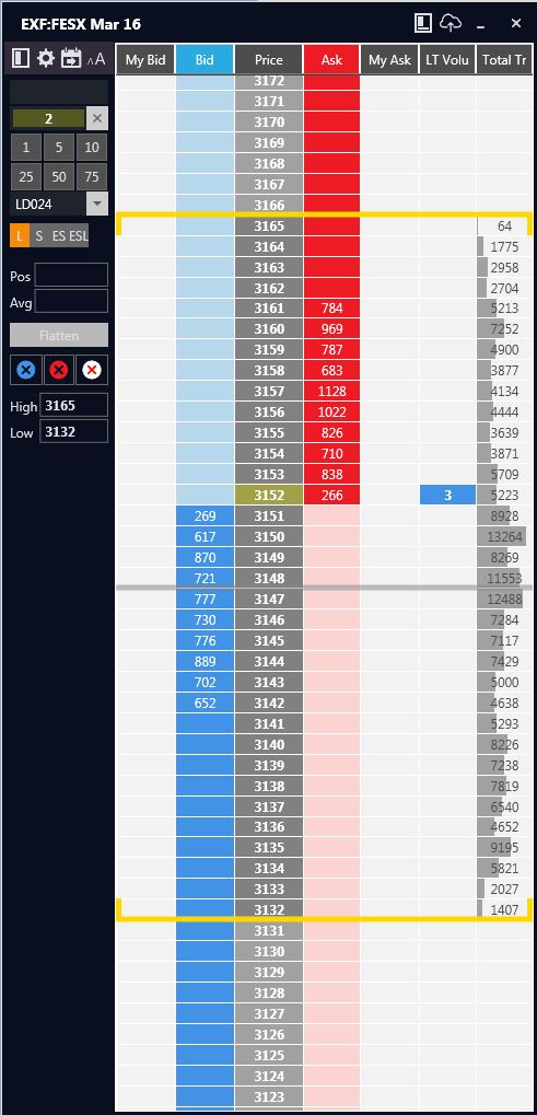 Good morning, The volume in my numbers bars chart is not adding up to what is going through on the exchange. See the volume on the chart below compared to the volume on my ladder (attached). Both are using the easyscreen feed so should they not reflect the same volumes at prices? For example at a price of 3135 my ladder shows that 9195 lots have traded whereas on the chart only 2450 lots have traded at that price. This seems to be a recurring problem at every price level and more importantly Sierra doesn't seem to register alot of the bigger sized trades. Is there a fix for this? http://www.sierrachart.com/image.php?l=1452071733483.png Thanks |