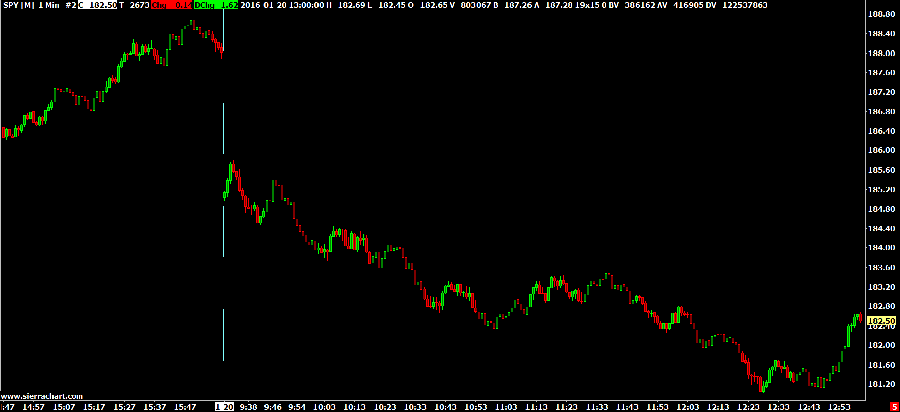 Why this is even being brought to our attention and IQ Feed is not simply addressing or explaining this on their side is beyond us. The data is so clearly within the 1 Minute historical data: http://www.sierrachart.com/image.php?l=1453403056106.png This is totally outside of our ability to do anything about. This is an excellent example of why support for Sierra Chart is not provided by anyone else, other than the engineers. This is why we always insist that users use the Support Board. It generally allows us to handle support efficiently so that we do not get overburdened most of the time. Sierra Chart Support - Engineering Level Your definitive source for support. Other responses are from users. Try to keep your questions brief and to the point. Be aware of support policy: https://www.sierrachart.com/index.php?l=PostingInformation.php#GeneralInformation For the most reliable, advanced, and zero cost futures order routing, *change* to the Teton service: Sierra Chart Teton Futures Order Routing Date Time Of Last Edit: 2016-01-21 19:05:40