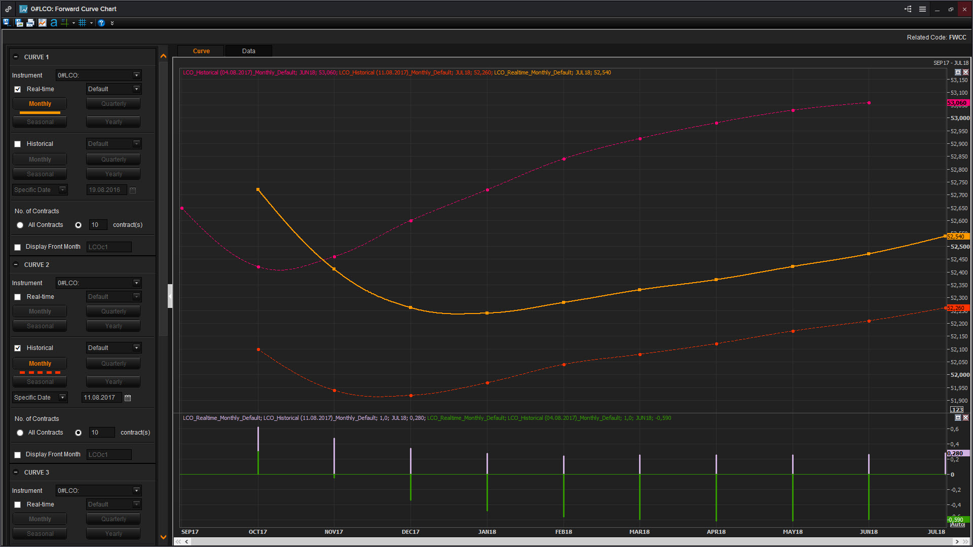 The requirement i would like building is the curve as displayed by CQG. i would like to see current/last settle/last week/last month/last 3 months. This would give a great visual to changing outlook http://news.cqg.com/workspaces/main/2013/02/cqg-trader-crude-oil-forward-curves.html |