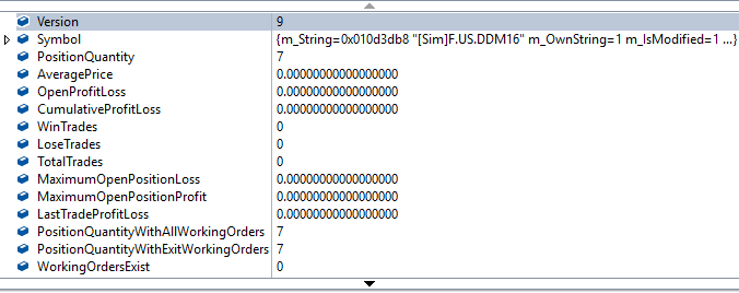 const char* SymbolToTrade = "F.US.DDM16"; s_SCPositionData S_Port; sc.GetTradePosition(S_Port); s_SCPositionData D_Port; sc.GetTradePositionForSymbolAndAccount(D_Port,SymbolToTrade,sc.SelectedTradeAccount); Symbol and trading account are right..because I also open position with same variables. Thx Date Time Of Last Edit: 2016-04-13 11:14:08