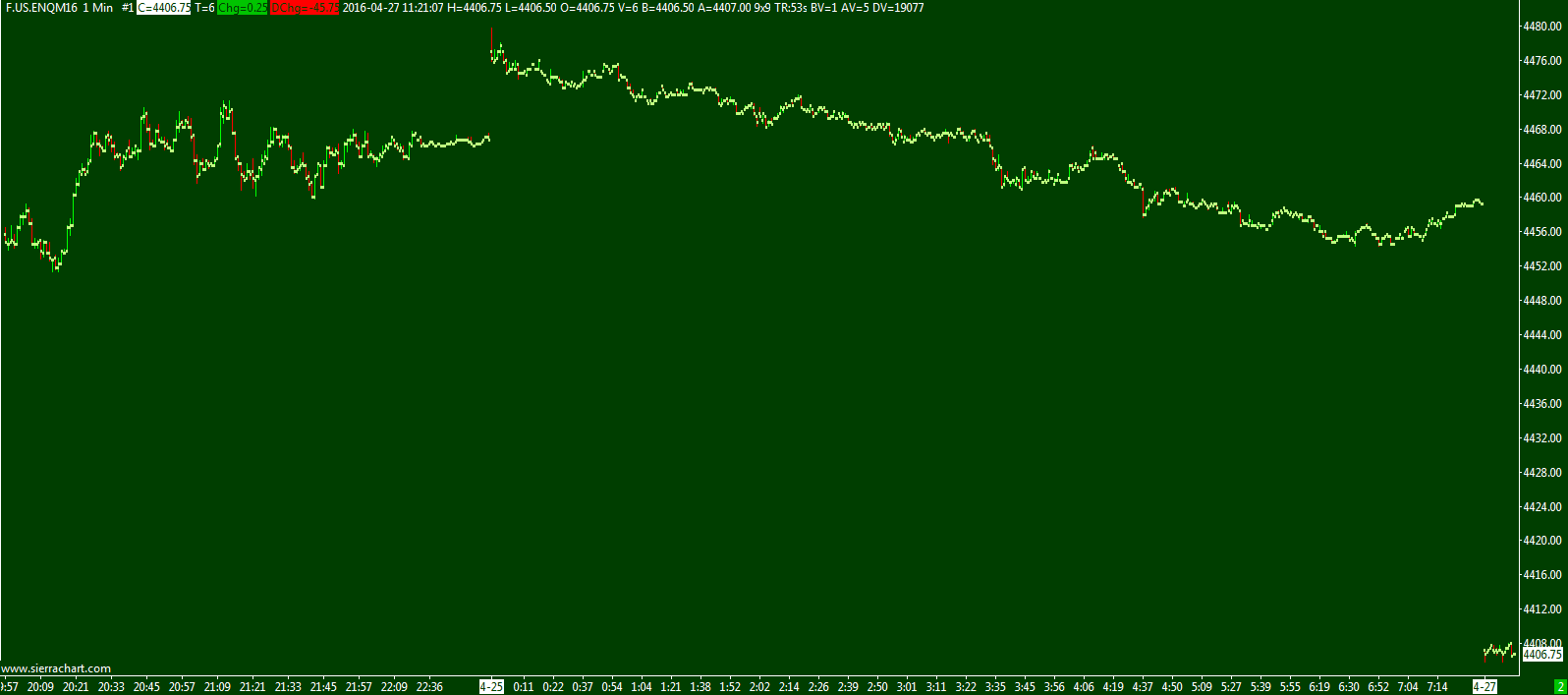 Hi, as mentioned in the title my problem is simply that showing a chart of the Nasdaq for this week, the data shows the 25th of April, then jumps straight to the 27th ? http://www.sierrachart.com/image.php?Image=1461748880436.png Thanks |