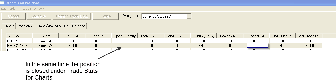 What does the Trade >> Trade Orders and Positions >> Positions tab show as the position for a symbol which should be flat? If what you see is incorrect, press the Refresh Trade Data button on that window. Sierra Chart Support - Engineering Level Your definitive source for support. Other responses are from users. Try to keep your questions brief and to the point. Be aware of support policy: https://www.sierrachart.com/index.php?l=PostingInformation.php#GeneralInformation For the most reliable, advanced, and zero cost futures order routing, *change* to the Teton service: Sierra Chart Teton Futures Order Routing Date Time Of Last Edit: 2013-07-10 19:50:17