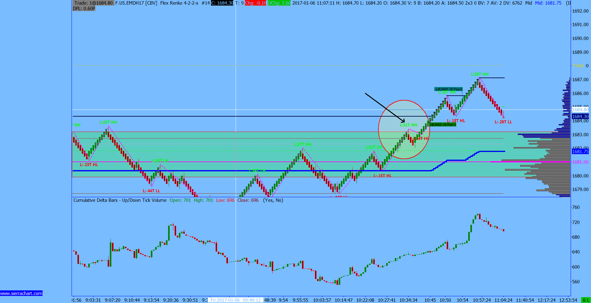 and the next bar's low (1682.40) Being these are flex Renko bars, actually validate with the Chart Values tool the true Low of the bar you are referring to. It might not be what you expect because these are manufactured bars.There could also be a problem with the internal comparisons being done and we will change these to do what we call a formatted comparison. Sierra Chart Support - Engineering Level Your definitive source for support. Other responses are from users. Try to keep your questions brief and to the point. Be aware of support policy: https://www.sierrachart.com/index.php?l=PostingInformation.php#GeneralInformation For the most reliable, advanced, and zero cost futures order routing, *change* to the Teton service: Sierra Chart Teton Futures Order Routing Date Time Of Last Edit: 2017-01-06 20:31:46