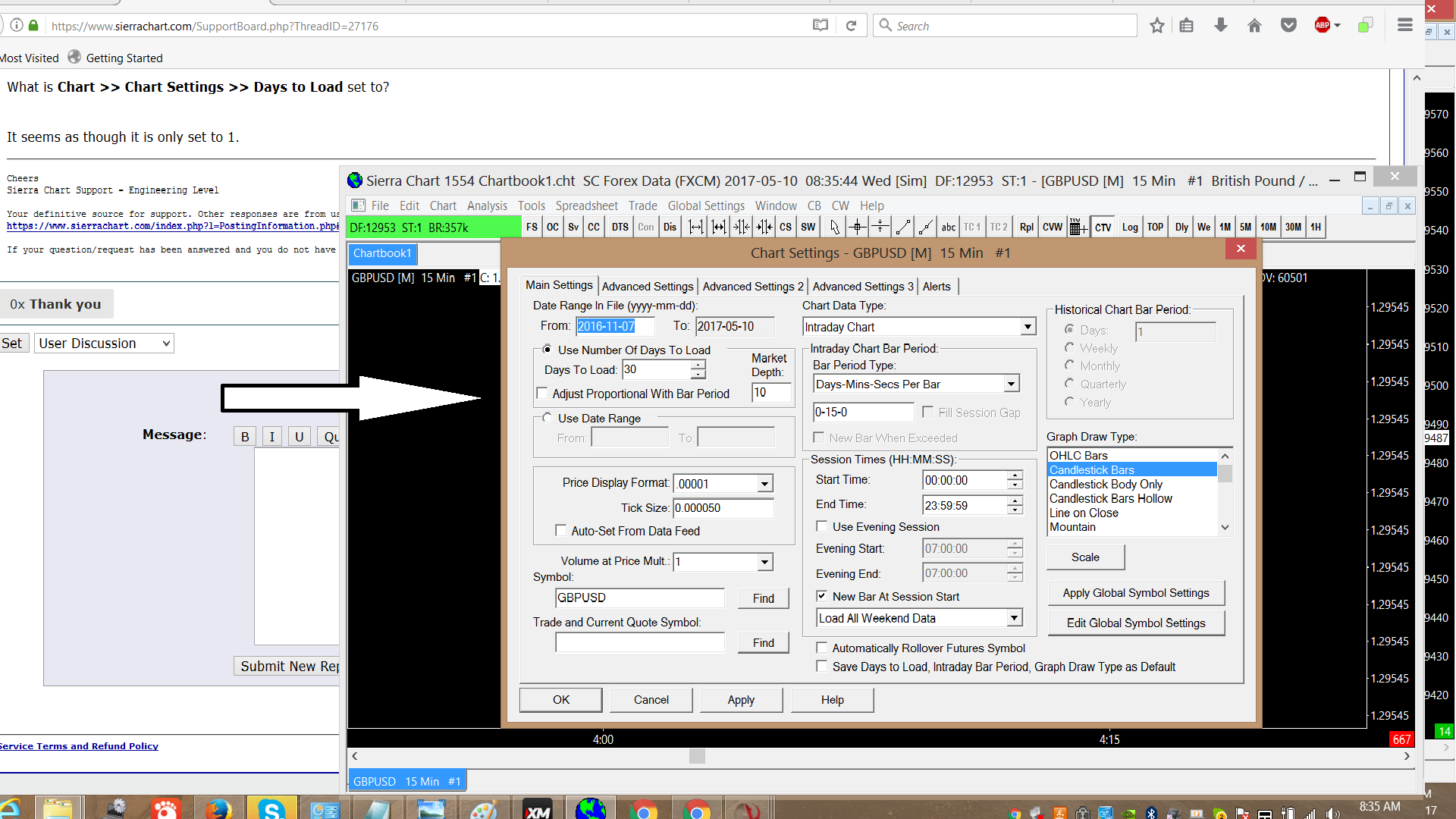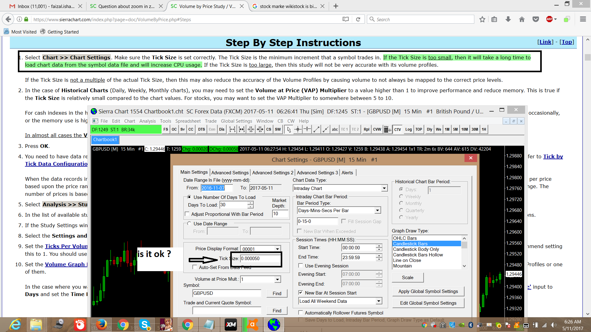 Actually its saying if your tick chart isn't set properly it wont give accurate volume price so please take a look at this screen shot and tell me my tick chart number is ok ?