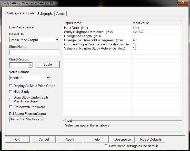 We do not think we can really give you any information beyond what the documentation says. After looking at the study, we did realize that the indication of a Positive/Negative divergence is reversed. This is going to be changed in version 1576. So what is now currently a positive divergence will be indicated as a negative divergence and negative divergence will be indicated as a positive divergence. We did some documentation updates here: http://www.sierrachart.com/index.php?page=doc/StudiesReference.php&ID=382#Divergence_Detector That documentation applies to version 1576 which will be out later today. The documentation explains how the study works. Whether the study is useful or not, we do not know. It could be that it is of no use based upon what you are looking for. Sierra Chart Support - Engineering Level Your definitive source for support. Other responses are from users. Try to keep your questions brief and to the point. Be aware of support policy: https://www.sierrachart.com/index.php?l=PostingInformation.php#GeneralInformation For the most reliable, advanced, and zero cost futures order routing, *change* to the Teton service: Sierra Chart Teton Futures Order Routing |