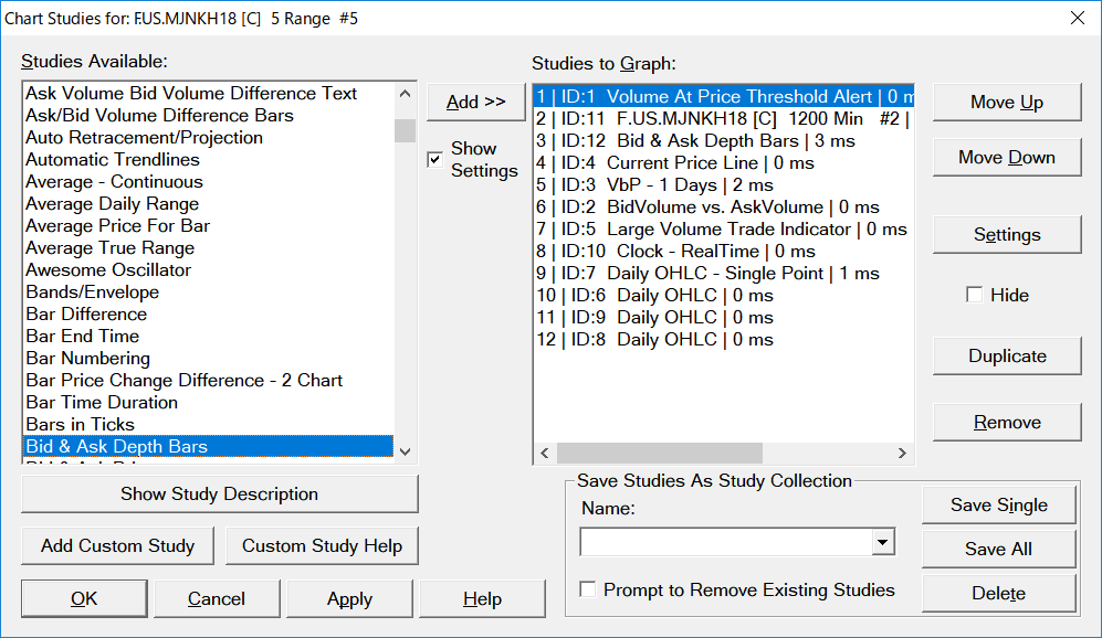 8 intraday charts. 2 symbols JNKH18, NJNKH8 at CQG. All studies in attached file. 3 Volume at price. |