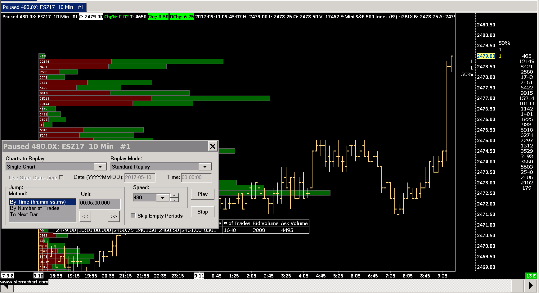 This screen image here shows that the volume by price data does match the Current Traded Total Volume during a replay where new highs are occurring. http://www.sierrachart.com/image.php?Image=1505357791401.png Sierra Chart Support - Engineering Level Your definitive source for support. Other responses are from users. Try to keep your questions brief and to the point. Be aware of support policy: https://www.sierrachart.com/index.php?l=PostingInformation.php#GeneralInformation For the most reliable, advanced, and zero cost futures order routing, *change* to the Teton service: Sierra Chart Teton Futures Order Routing |