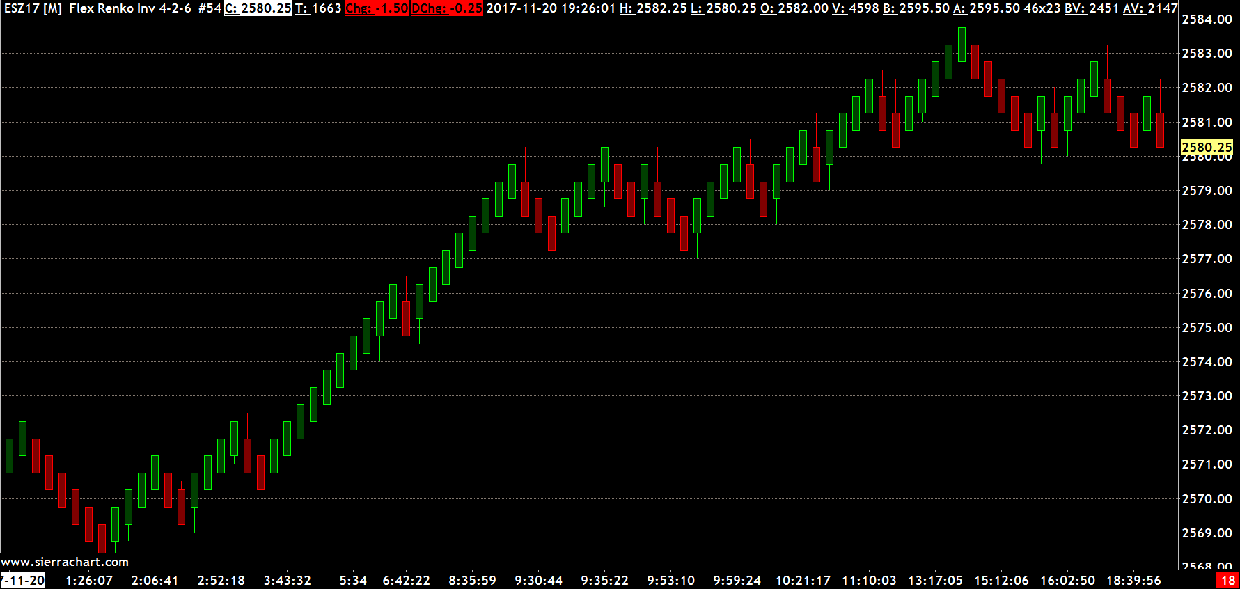We are still looking over your document but there is no need for all these details, at least we do not think so. There was a problem where the reversals were just not handled right on Flex Renko and Universal Renko in the last couple of versions. The offset just was not being applied. This will be fixed with a new version out tomorrow. Sierra Chart Support - Engineering Level Your definitive source for support. Other responses are from users. Try to keep your questions brief and to the point. Be aware of support policy: https://www.sierrachart.com/index.php?l=PostingInformation.php#GeneralInformation For the most reliable, advanced, and zero cost futures order routing, *change* to the Teton service: Sierra Chart Teton Futures Order Routing Date Time Of Last Edit: 2017-11-03 03:19:07