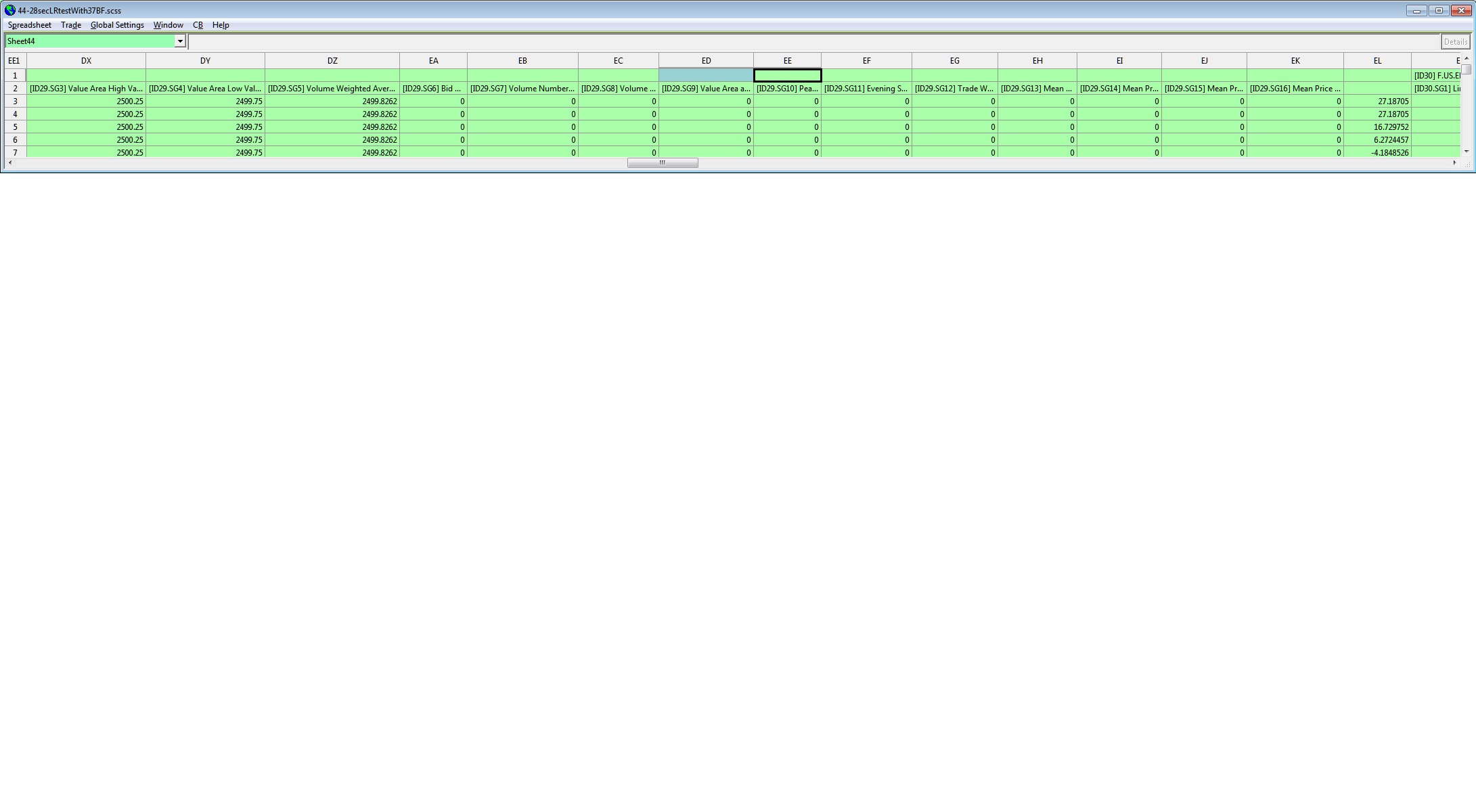 We are not sure why you are providing all of this information. Most of this is of no use to us at all and we do not understand it. It sounds as though that you are seeing the four columns outputted to the Sheet by the Volume by Price study instead of 3 when you are using the Volume by Price study with the Study/Price Overlay study. This issue is resolved in version 1616. The inherent problem you have was solved years ago. You need to use this method to reference study subgraphs: Working with Spreadsheets: References to Study Subgraph Columns when using the Spreadsheet Study (References to Study Subgraph Columns when using the Spreadsheet Study) There is no other further help we can provide. Therefore, continue to use the old version of Sierra Chart until you update the cell references used in formulas. Sierra Chart Support - Engineering Level Your definitive source for support. Other responses are from users. Try to keep your questions brief and to the point. Be aware of support policy: https://www.sierrachart.com/index.php?l=PostingInformation.php#GeneralInformation For the most reliable, advanced, and zero cost futures order routing, *change* to the Teton service: Sierra Chart Teton Futures Order Routing Date Time Of Last Edit: 2017-09-29 03:02:20