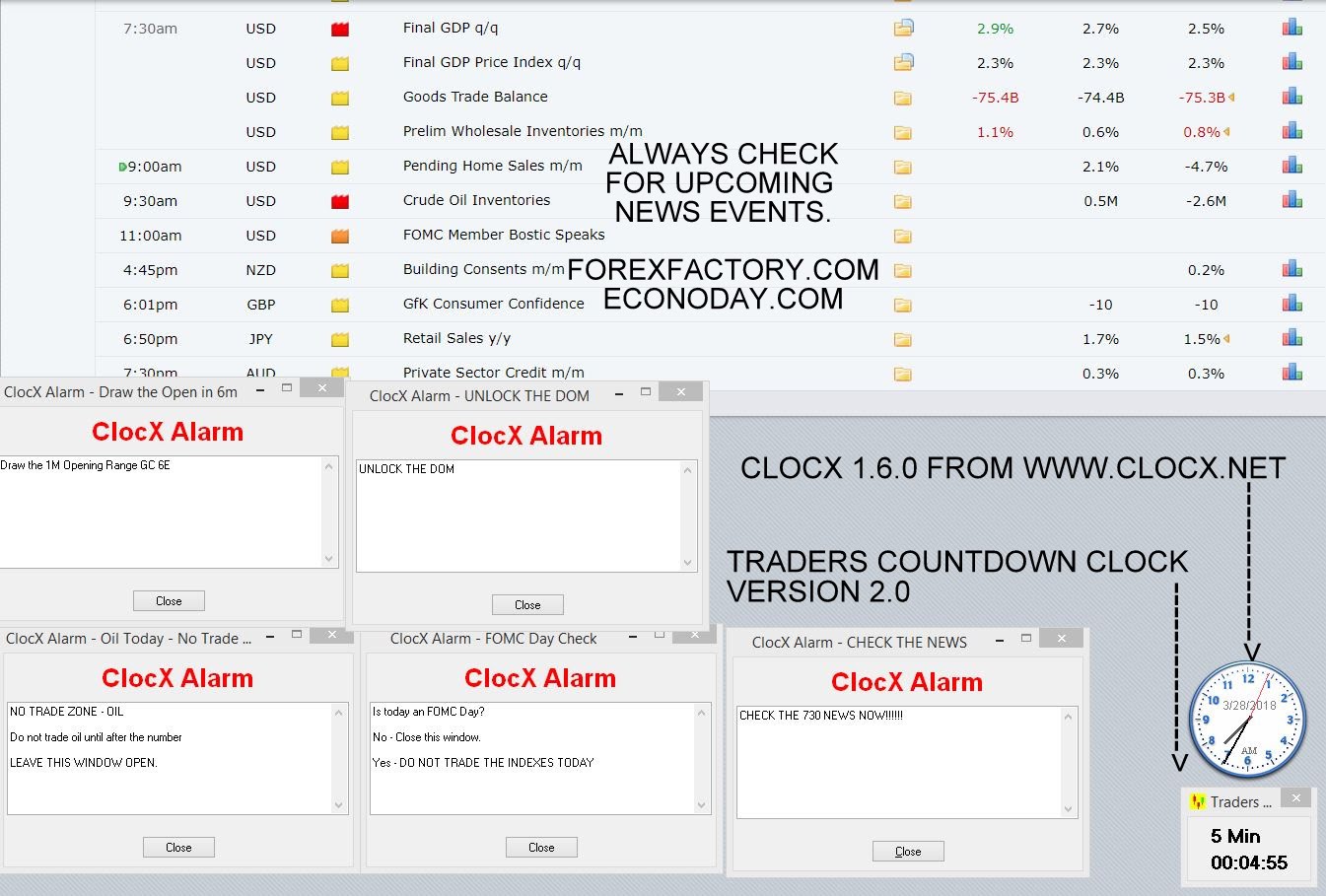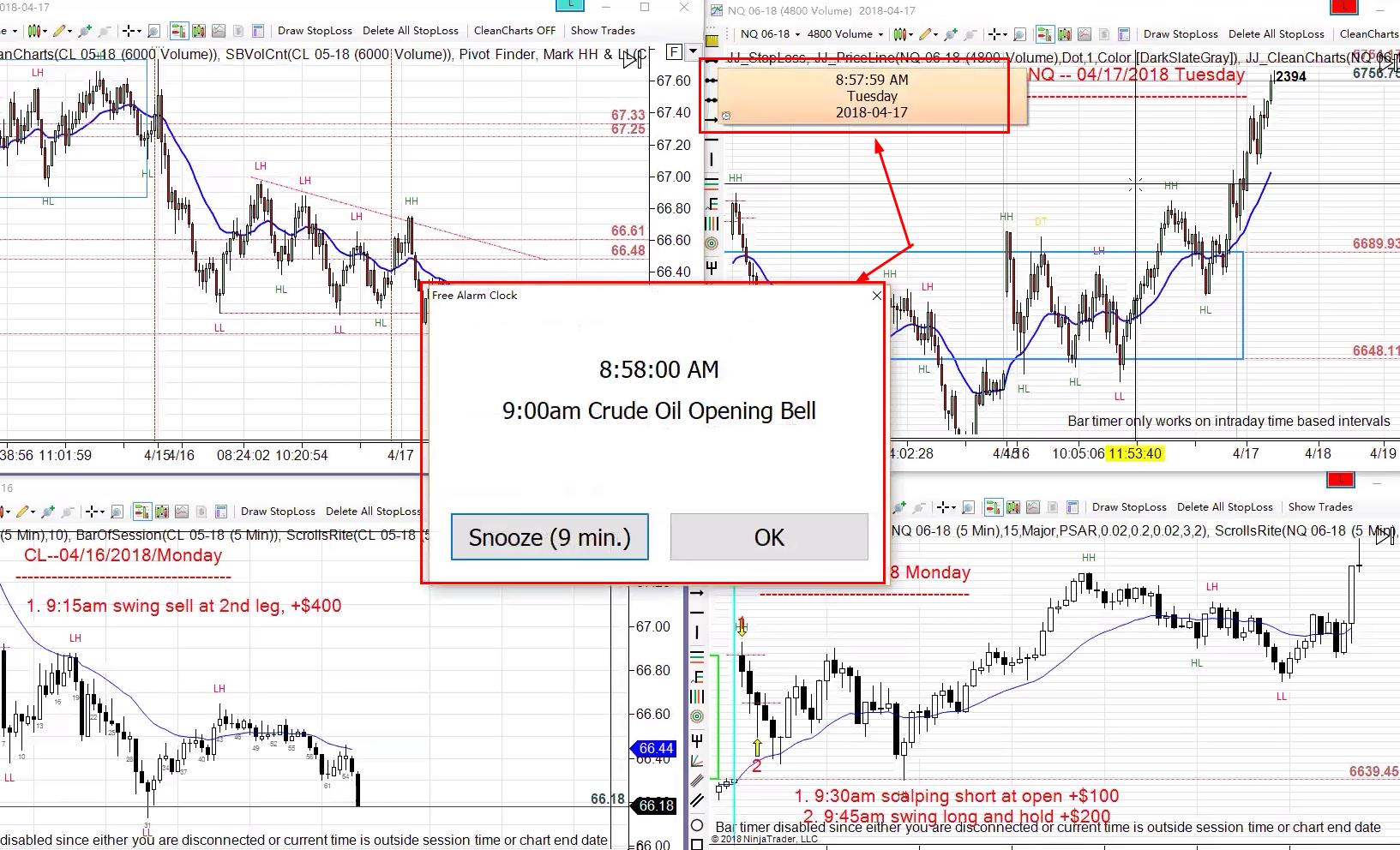 How to get an alert for market open? and set like this, a time board?
