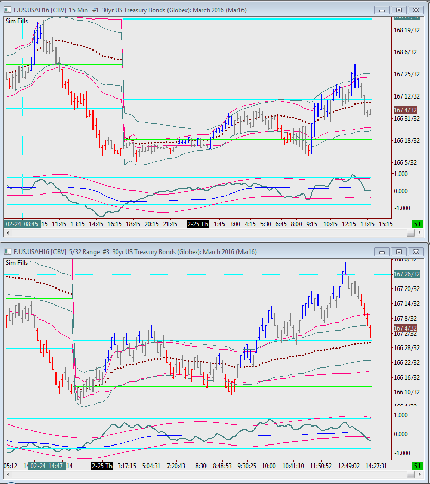 Hi I noticed inconsistency in ECIVWAP study. Please see attached screen shot. It shows bond futures charts on 15 min and 5 range, with brown dots as VWAP. From my understanding, VWAP should be the same regardless of time frame. Yet 15 min is above VWAP, and 5 range is below. Quite large difference. Can you please look into it? Thank you |