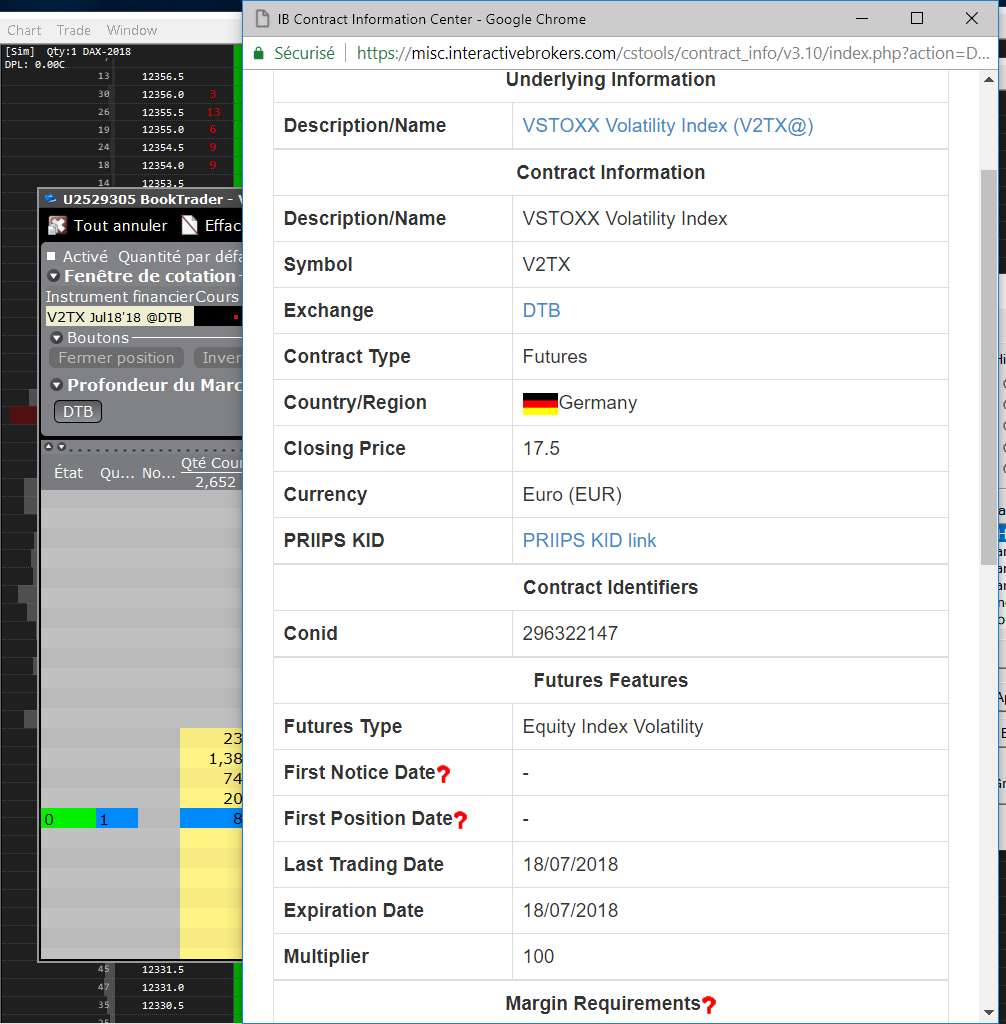 Dear Support, Can you please check the V2TX Interactive Brokers symbol when using the Sierrachart Datafeed? I'm using the 'Allow support for SC datafeed' and subscribed to EUREX Realtime, but when trying to open any chart or DOM for the given symbol (V2TX), I receive the IB error message: not subscribed to DTB, and no chart is displayed (Download Failed). I am not subscribed to any data at IB but using your realtime feed. When I am connected directly to the SC datafeed, all the charts and DOMs come up and update correctly for this product (for example DVG19) Thank you. |