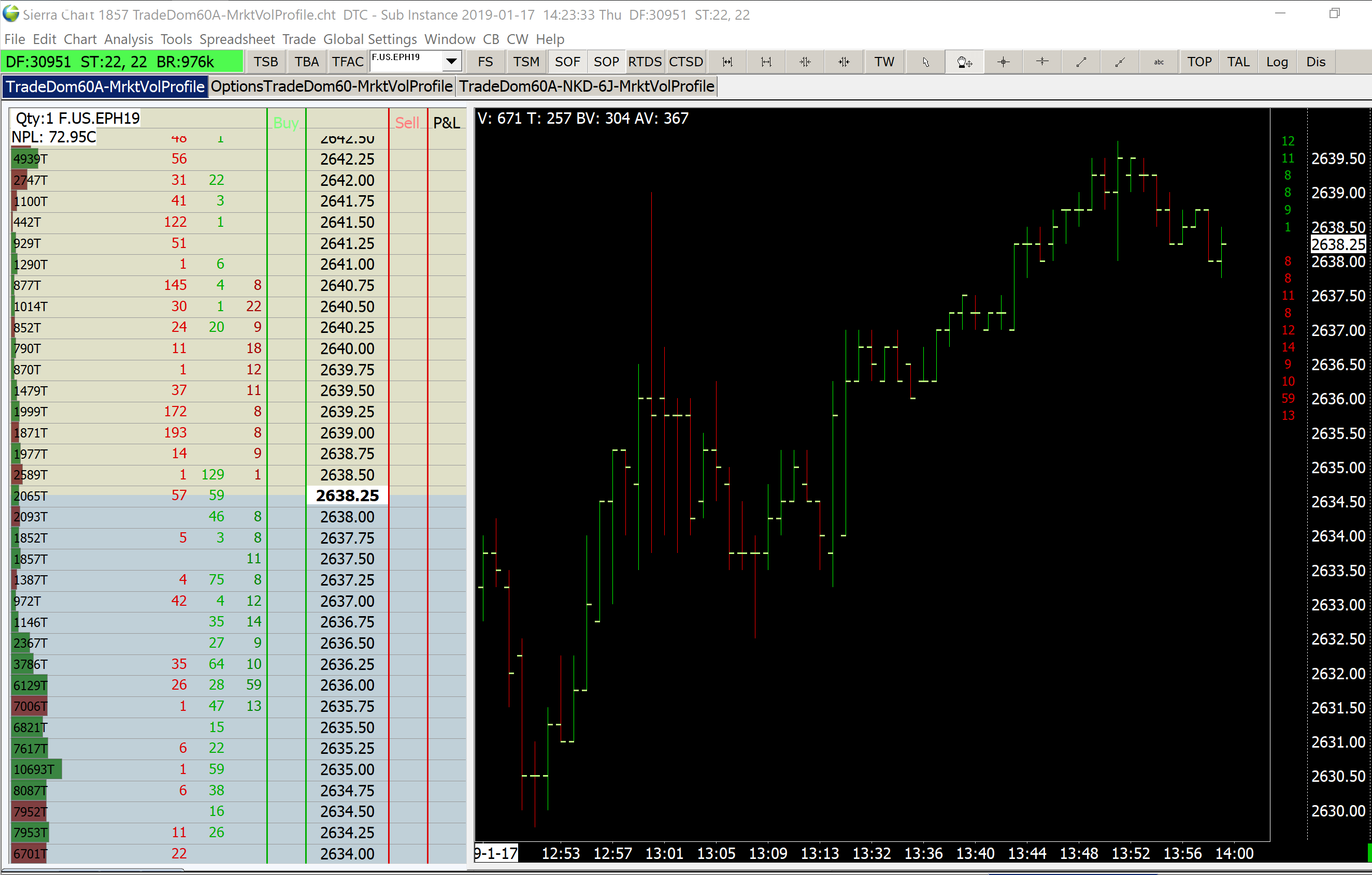 Since the ControlBar is always in view and the Trade Window isn't, the ControlBar TSM status should always reference the current Chartbook trade mode status. As in the main account session the ControlBar TSM controls the entire session for all open Chartbooks and Trade Windows, therefore displays the true trade mode status of the Chartbooks. If the ControlBar TSM in a sub-instance session could control and display the trade mode status of individual Chartbooks and therefore the Trade Window of the Chartbook would change too, it then would operate similar to how it does in the main account session, and still support the option to assign individual Chartbooks in a sub-instance session to sim and another to a different account. By allowing a Chartbook in a sub-instance session to remain in sim mode even though the ControlBar TSM can be toggled and appear to show live trading mode, which is also stated in the popup message when toggling the ControlBar TSM status, is confusing, unless the trader opens the Trade Window to confirm the true Chartbook mode. Thank you, Sierra Chart is a great program and appreciate your thoughts and consideration. Date Time Of Last Edit: 2019-01-22 05:59:52