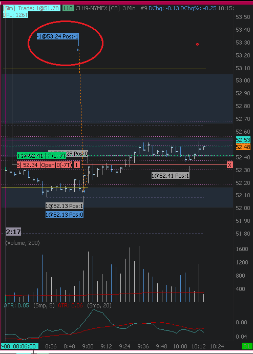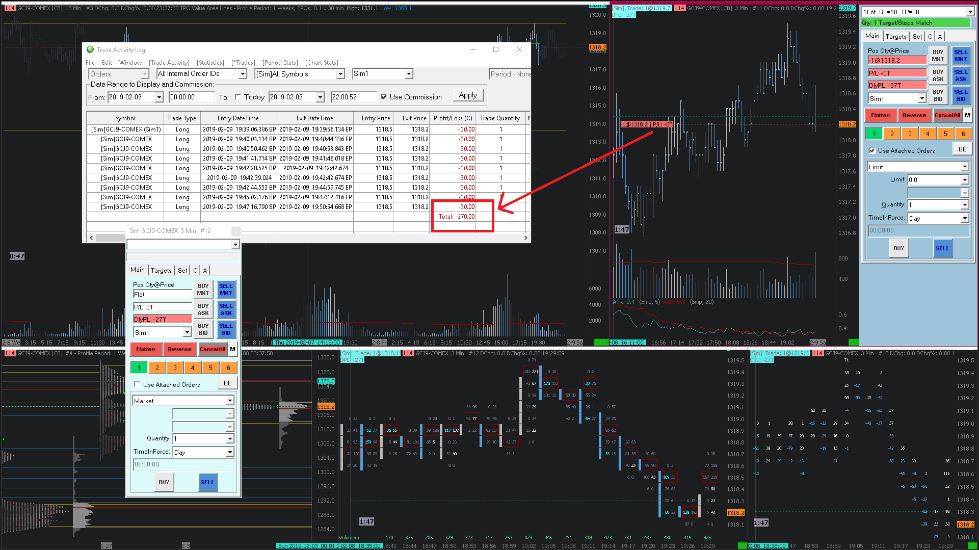 Hello. Yes Trading Simulation Mode is on. Well I have a another problem. I have an Market Order left in the GC. I dont now why. I can not delete it or flatten or cancel it. Please see picture 1. Here is the Market Order below in the Footprint. If I "Flatten" the Order then it is disappeared but it comes up on the M3 Chart (picture 2). Flattening causes 3 Ticks Loss to be posted to my sim account each time. If I "Flatten" the Order in the M3 Chart it is gone but comes again in the Footprint. And again 3 Ticks Loss. It always goes back and forth. Now my statistics are not correct anymore. Super. How can I delete the order? I do not know how to continue. Regards Jan Rabe |