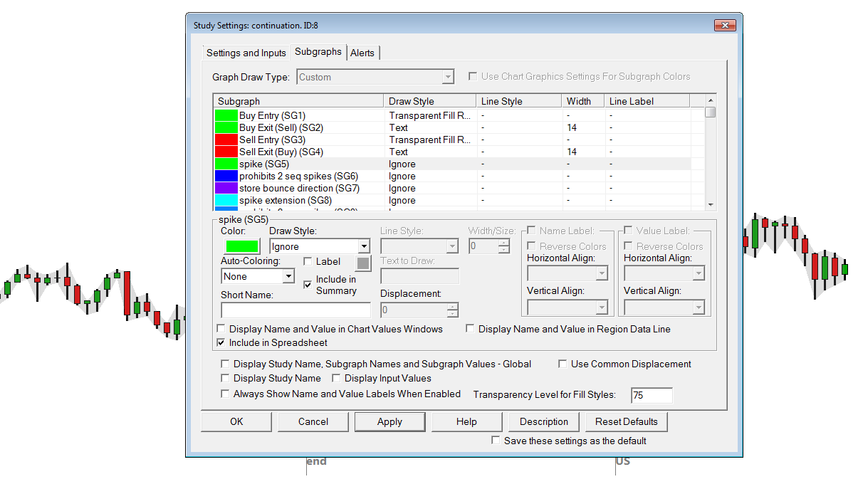 Hi, looking an answer, found this: "The remaining columns (M through Z, assuming the default of 16 formula columns) can be optionally graphed as well. To graph these columns on the chart, go to the Study Settings window for the Spreadsheet Study on the chart and set Draw Style to the desired style for the corresponding Subgraph." Tried above but seeing graphing in main graph, it there a way to graph a spreadsheet column in a separate graph, pls |