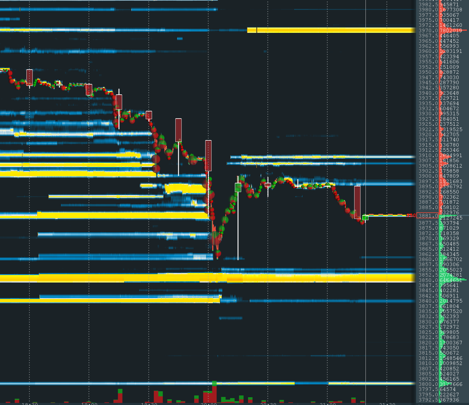 I don't know how Bookmap is doing this exactly but it seems that they use some logic to cluster the levels (based on the overall liquidity percentage?) so that they highlight areas instead of single price levels. It would be great if Sierra engineers take a deep look into Bookmaps implementation and build something similar. Would love to get rid of Bookmap and only use Sierra as a all-in-one solution. I just can't get used to trading from Bookmap ;-)