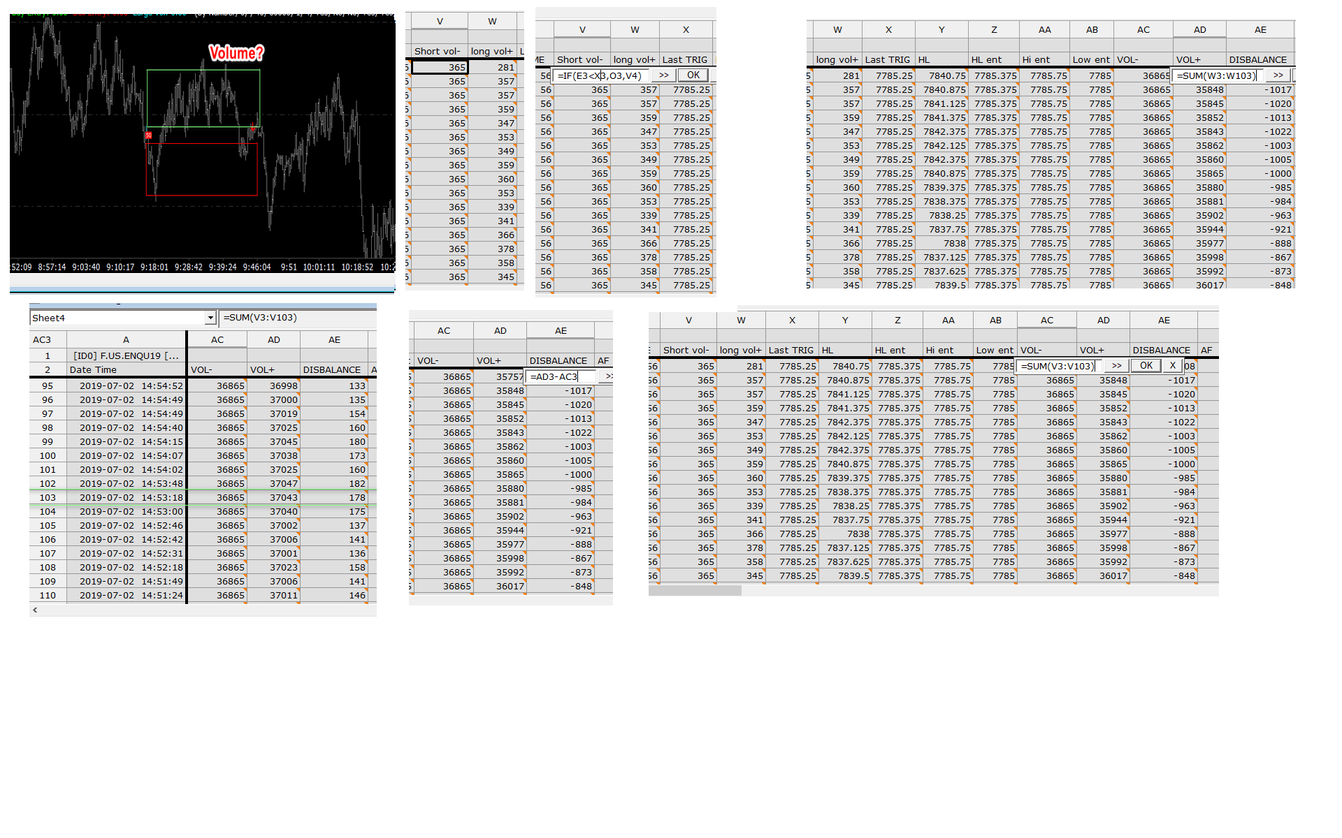 I understand that in the tables of some things can not be achieved. In fact, this is my first stage in trade automation and I want to improve this for the better. My main task is to filter the volumes, which I perfectly see in T @ S, as in the example on the screen. Is it possible to display this filtering in Spreadshets? If not, then perhaps this can be done with the help of ACSIL, and is it much more difficult? It took me a month to understand the tables, how do you think, to implement automated filtering from T @ S, how should I start and how long will it take? The question is, of course, rhetorical, the main thing is that all of this is really feasible and the costs paid off. Maybe I should pay attention to the paid package5 with the Numbers bars research and use the volume in spreadsheets, is this not an option?