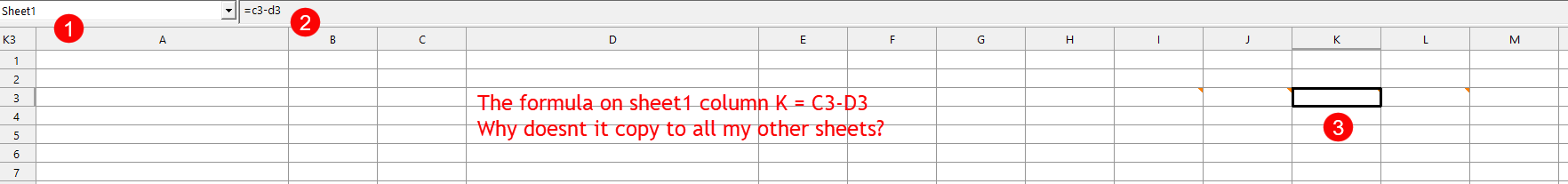 Another question. Im struggling to understand the Formula Source Sheet functionality. On my spreadsheet, it says: 'Formula Source Sheet #1. Enter and modify formulas for this sheet on Sheet1' So I go to sheet 1 and enter a formula into column K (=C3-D3) I then go back to my charts spreadsheet and notice that the formula hasn't copied over. I have a bunch of different sheets. The formula has not copied across to any of them. I am trying to understand this help file but Im not getting it. Spreadsheet Study Inputs: Formula Source Sheet Number Date Time Of Last Edit: 2019-07-08 16:41:04