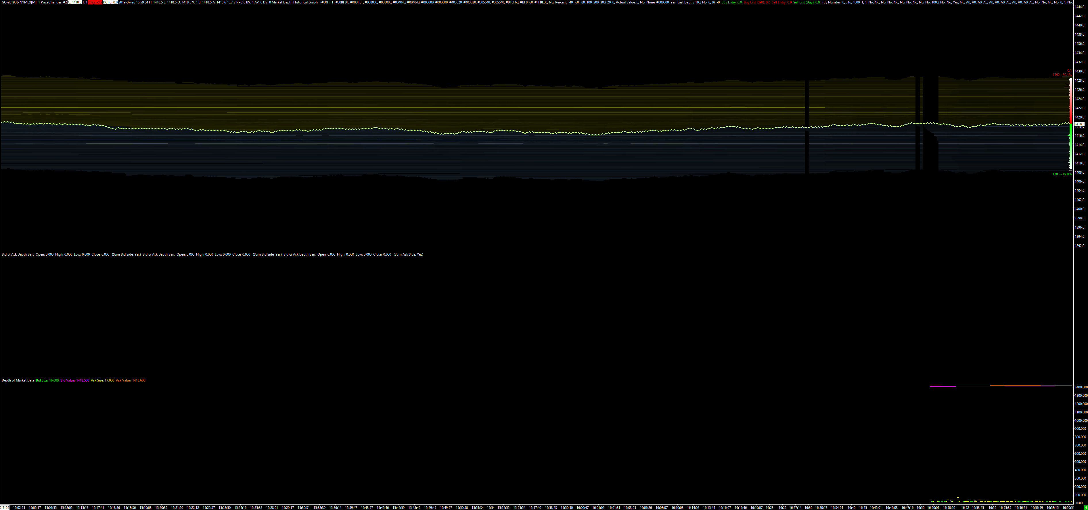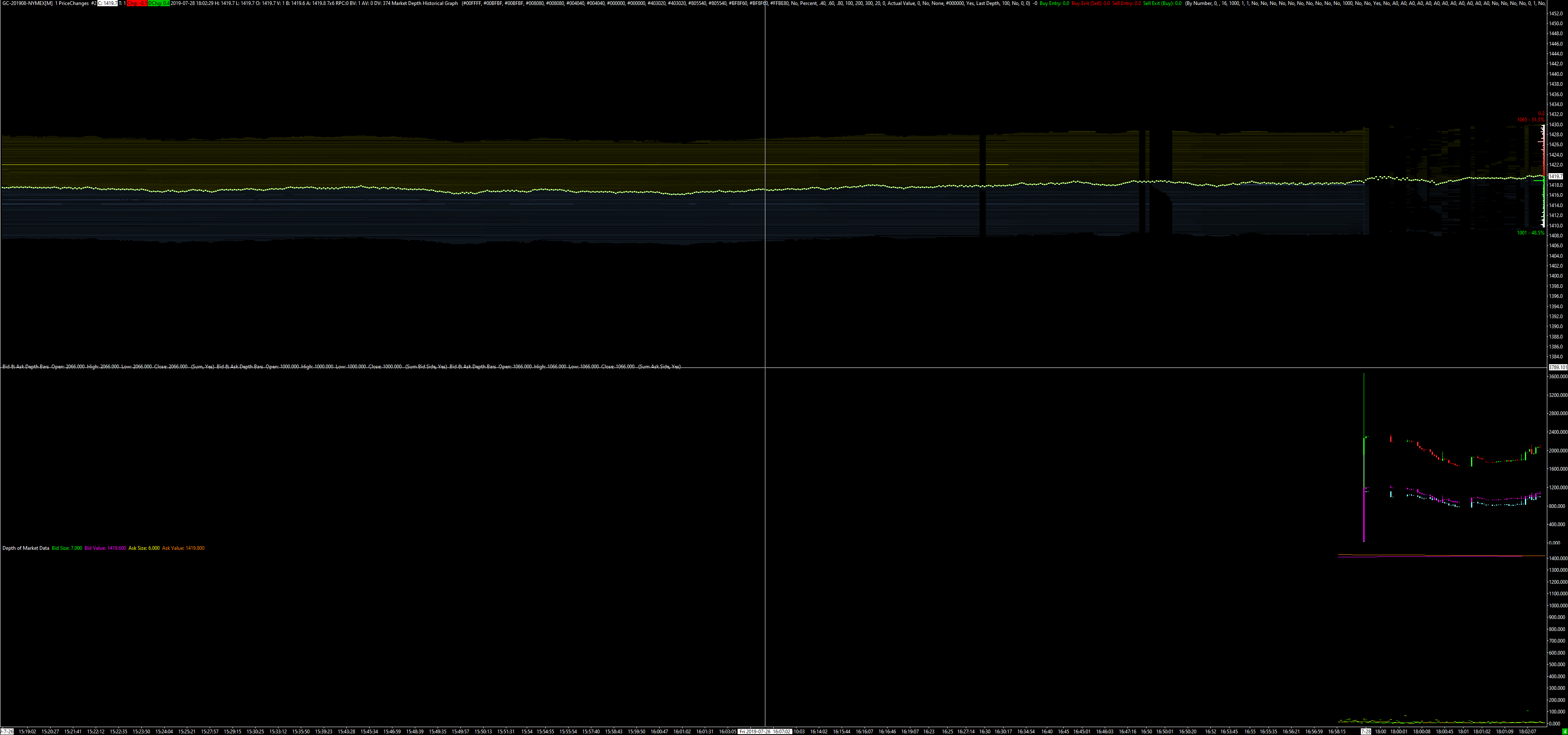 Depth Bars are still not calculating in 1957. All of my depth data is being read and displayed by historical depth graph without error. Also new version of the Bid & Ask Depth Bar study doesn't seem to be able to display specific depths. Would I just duplicate historical depth graph and change depth setting to desired and use that as an input to Bid & Ask Depth Bar Study for the specific level I want it to display? As far as I can tell 1941 was the last functional version of sierra chart. Thank you, Date Time Of Last Edit: 2019-07-28 21:20:09