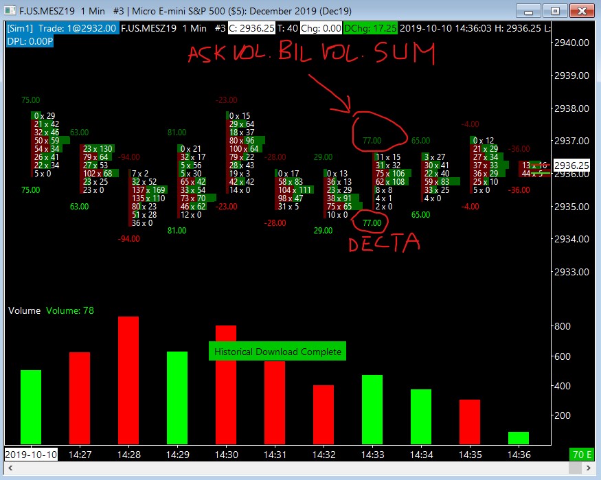 Hi, is there an indicator very similar to "ASK VOLUME BID VOLUME DIFFERENCE TEXT" but which shows me the sum instead of the delta? Otherwise, is it possible to have the code of the "ASK VOLUME BID VOLUME DIFFERENCE TEXT" indicator so that I can study it and make the indicator that I want? Thanks Piero |