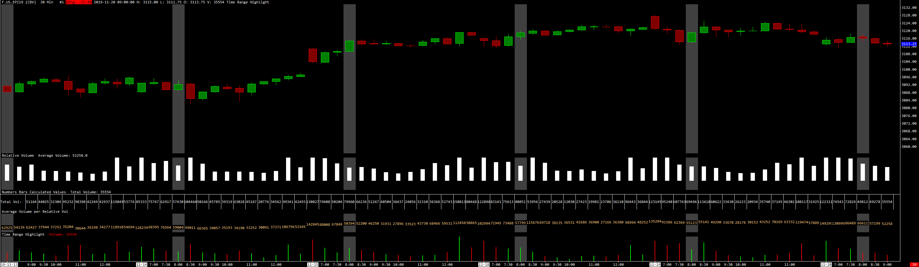 Also refer to: Relative Volume: Accuracy of Average Volume Calculation Sierra Chart Support - Engineering Level Your definitive source for support. Other responses are from users. Try to keep your questions brief and to the point. Be aware of support policy: https://www.sierrachart.com/index.php?l=PostingInformation.php#GeneralInformation For the most reliable, advanced, and zero cost futures order routing, *change* to the Teton service: Sierra Chart Teton Futures Order Routing |