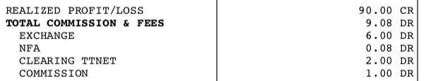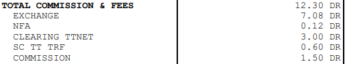 It's what is shown in AMPs commission calculator for TT. A roundturn costs 3.90 and if I add 0.20 for SC/TT routing a roundturn in total is 4.10. I traded 3 rt so the cost is 12.30 - all good at least for the total sum.