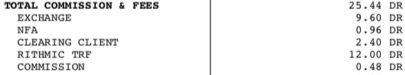 In regards to post #6, we calculate you traded 46 contracts and at .25 USD per contract billed by Rithmic, the Rithmic transaction fee makes sense. In the case of TT there is no cost to AMP for TT routing. Nothing additional. Certainly they have to pay TT for what is called Map fees. But that is fixed at something like 5000 a month for the CME group. And they have that cost no matter how many users are on TT. This Clearing TT Fee is double Rithmic and then you have the .10 on top of it. This is not making any sense. Sierra Chart Support - Engineering Level Your definitive source for support. Other responses are from users. Try to keep your questions brief and to the point. Be aware of support policy: https://www.sierrachart.com/index.php?l=PostingInformation.php#GeneralInformation For the most reliable, advanced, and zero cost futures order routing, *change* to the Teton service: Sierra Chart Teton Futures Order Routing |