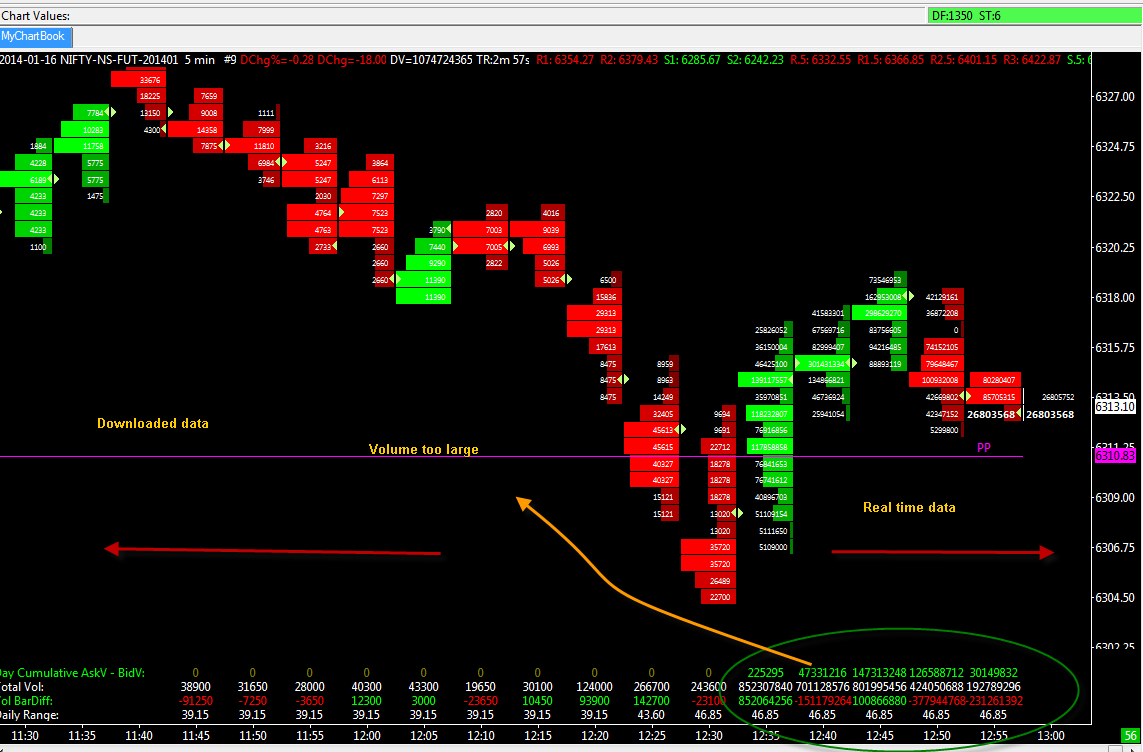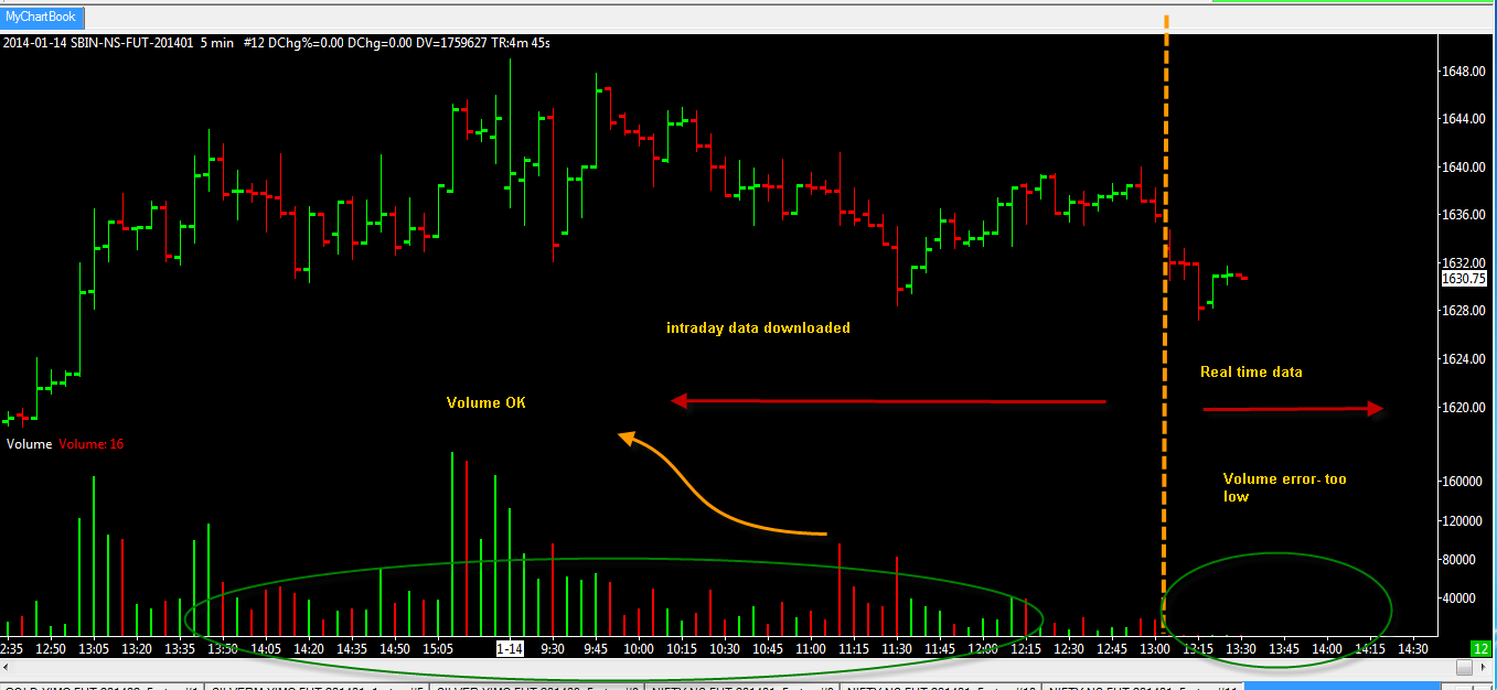 The intraday volumes are coming in weights whereas the day end volume are coming in lots. So you are finding the difference. We will check how we can address this issue. Sierra Chart Support - Engineering Level Your definitive source for support. Other responses are from users. Try to keep your questions brief and to the point. Be aware of support policy: https://www.sierrachart.com/index.php?l=PostingInformation.php#GeneralInformation For the most reliable, advanced, and zero cost futures order routing, *change* to the Teton service: Sierra Chart Teton Futures Order Routing |